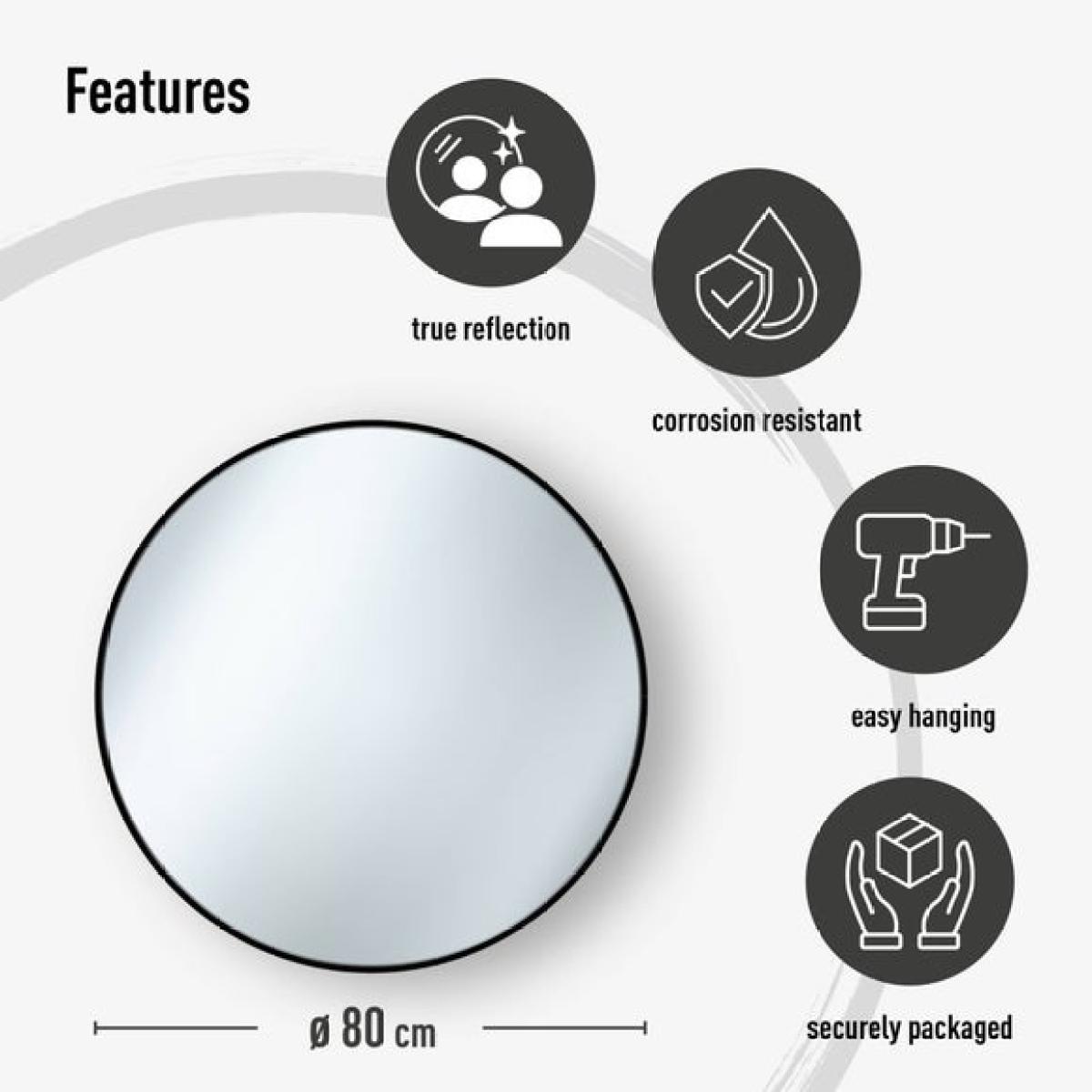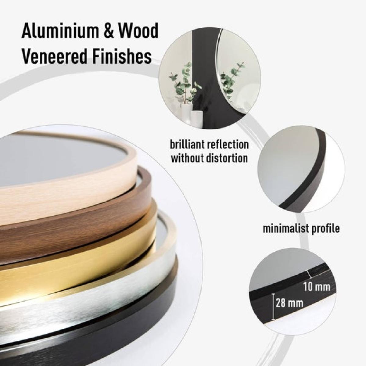 * Large wall mirror * Timeless design * Aluminium frame Sleek, smart and effortlessly elegant, the Jaron round wall mirror is a timeless addition to any space. With its slim aluminium frame in a choice of chic finishes, it adds just the right touch of sophistication without overpowering your décor. The top-quality glass gives you a crystal-clear, distortion-free reflection, while the clever smart hanger makes installation refreshingly fuss-free.