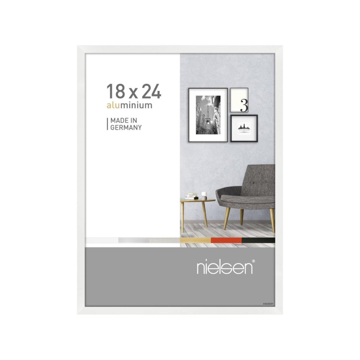 * Modern, Sleek Design* Features Slightly-Inclined Profile - Draws Eyes to Photo* Easy-to-Use Push & Turn Clips* Suitable for Use in Portrait/Landscape Format* Made in Germany Display your cherished memories with the Nielsen Pixel Photo Frame, crafted with a sleek, slightly-inclined profile that draws all eyes to your photo. Its aluminium build ensures both durability and a refined finish. Equipped with high-quality components, this frame features a protective glass front that keeps your picture safe and clear. The sturdy back panel includes easy-to-use push-and-turn clips, allowing for quick photo changes. Strong sawtooth hangers make hanging a breeze, offering flexibility in positioning. Please Note: Sizes under A4 feature an easel back; sizes above feature sawtooth hangers.