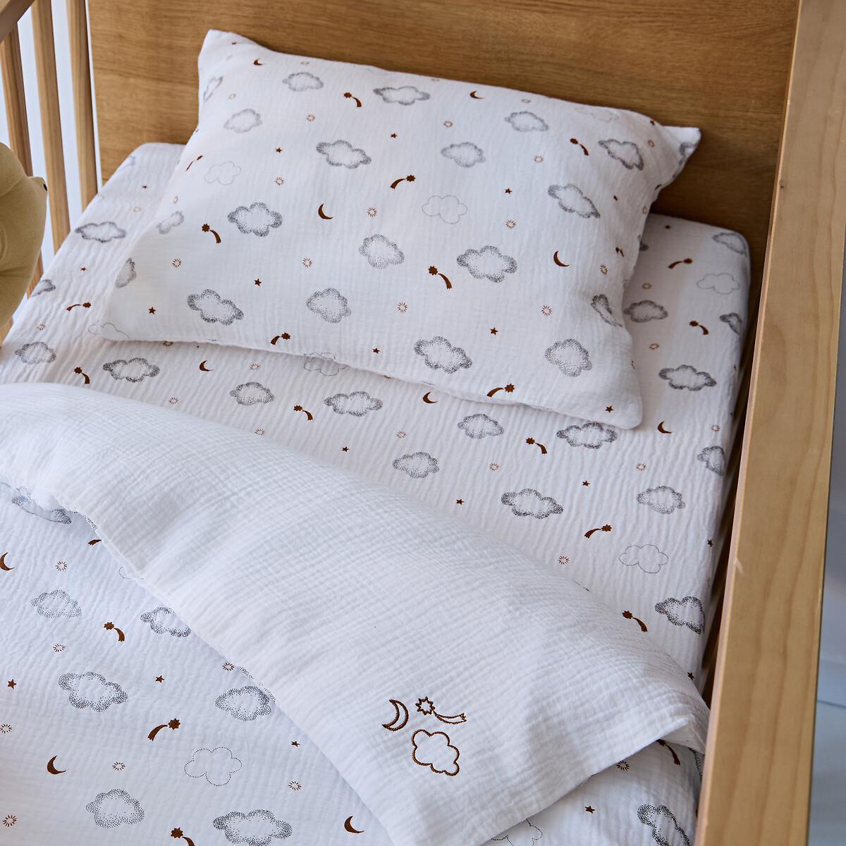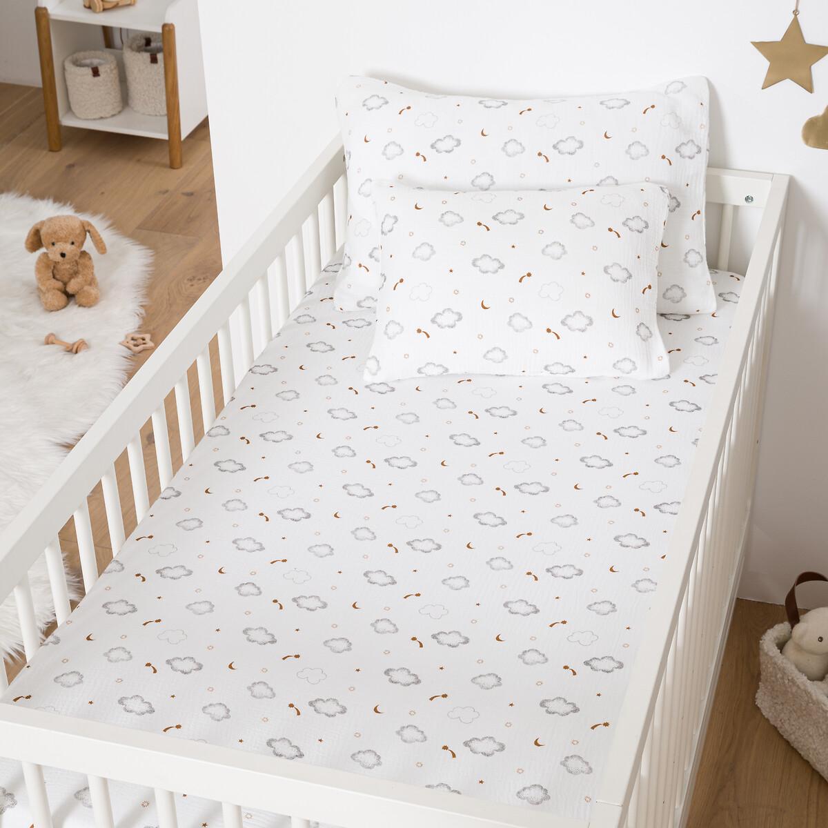 For sweet nights of dreaming, between clouds and shooting stars, the Nieva bed linen will gently accompany your baby. Created by La Redoute Interiors. Cotton muslin is light, supple and super soft. Delicately embossed, it does not require ironing. Product Details • 100% cotton, 135g/m2 • Cotton muslin • For mattress height 17cm. As the seasons go by, add your own personal touch by mixing the Nieva range with our Kumla range in cotton muslin. Care Advice • Machine washable at 40°C • Product will regain its texture after tumble drying. Dimensions • 60 x 120cm: Cot bed • 70 x 140cm: Cot bed • OEKO-TEX® Standard 100. Standard 100 certification by OEKO-TEX® tests textile products for harmful substances via an independent, international label.