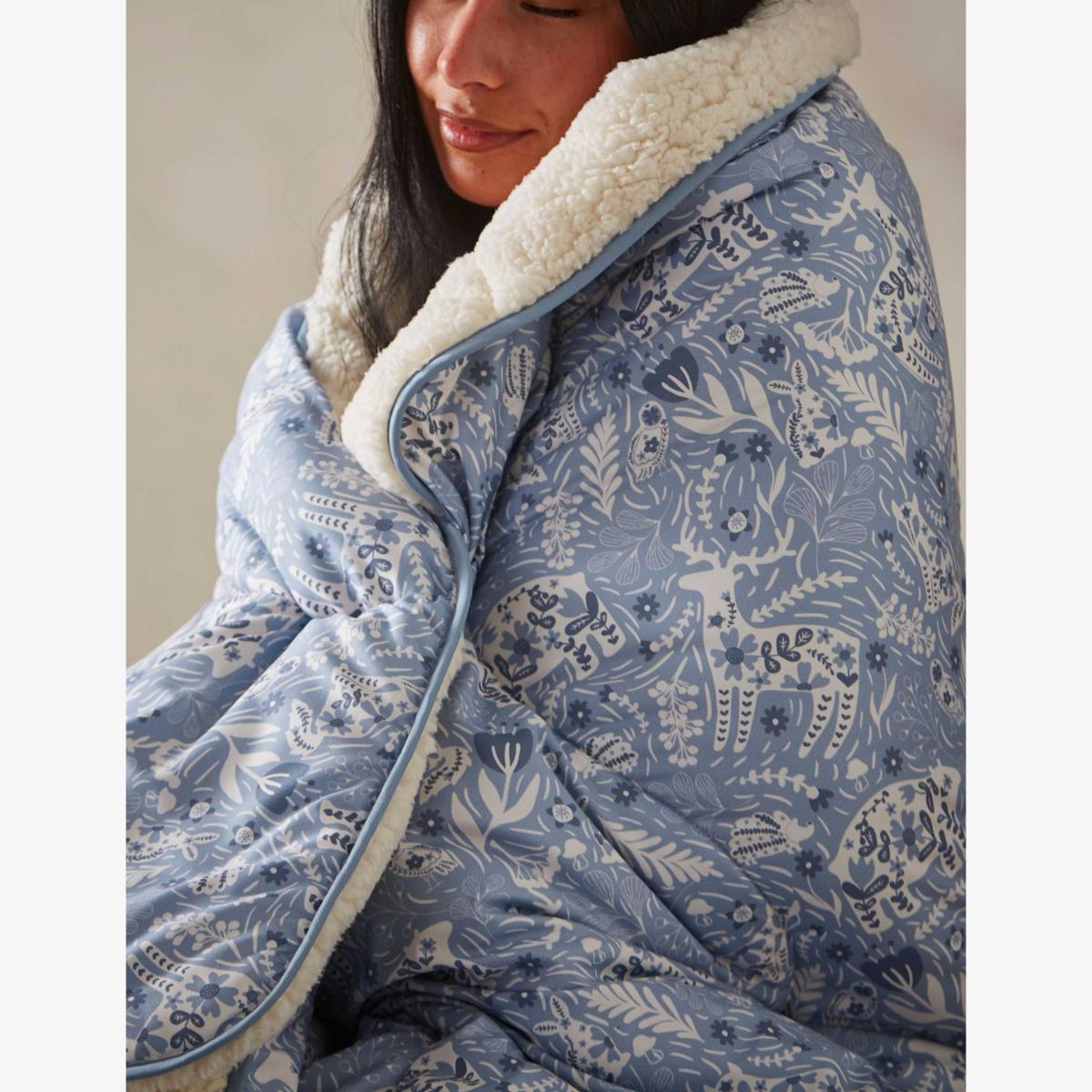 Whether you're cosying up on the sofa or adding an extra layer to your bed, this Night Lark throw is a luxurious choice. It's made in a generous 9 tog rating, with a winter wonderland-themed print. Quilted detailing creates a plush texture, while poppers mean you can wear it when it's really cold. On the inside, a thick fleece lining feels gloriously soft and snuggly.