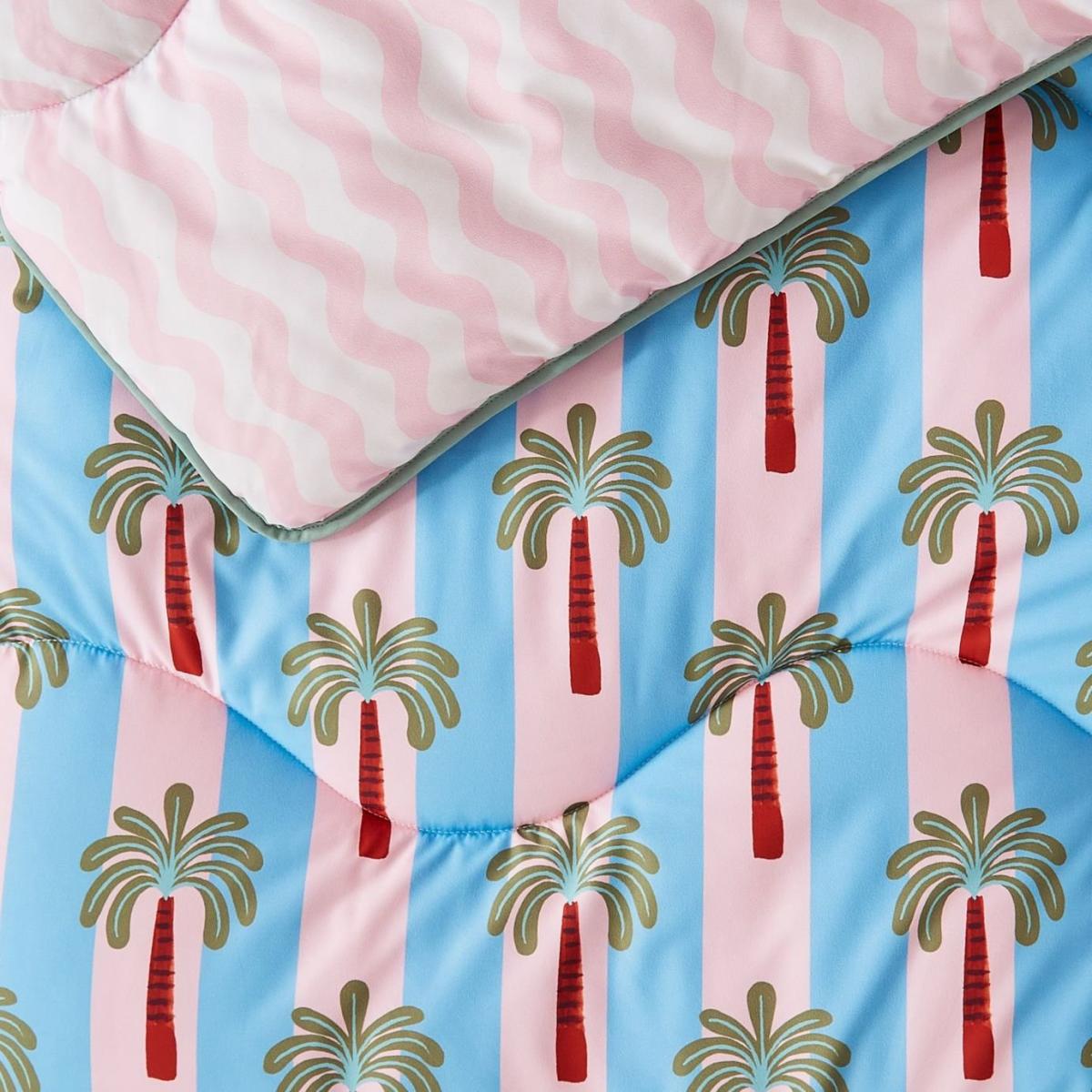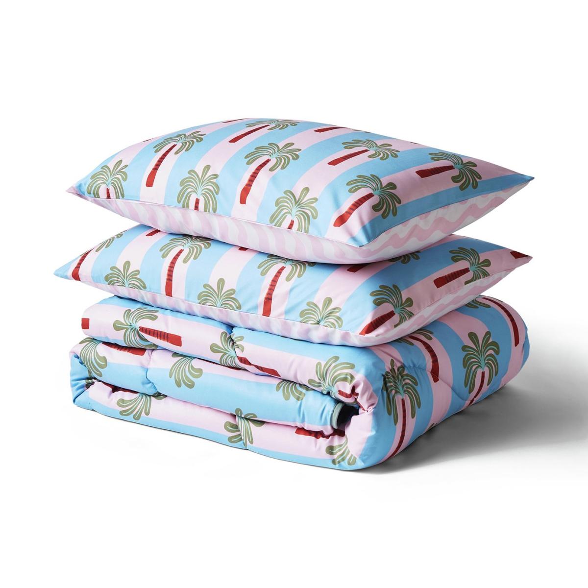 Say goodbye to duvet cover struggles with the Night Lark Coverless Duvet Set in limited-edition Eleanor Bowmer Electric Coast design. Reversible with two vibrant looks inspired by the LA coast. Built-in cover means easy washing and quick drying. Filled with lightweight, soft Smartfil fibres made from recycled PET bottles, offering lasting warmth. Crafted in a B Corp certified Eco Factory using renewable energy. Comes in a reusable duffle bag. Single size includes 1 pillowcase; Double & King include pairs. Set includes Duvet and 2 X Pillowcases. 10.5 tog duvet. Cover made from 100% polyester. Filling made from 100% recycled polyester. King size bed. Duvet size L225, W220cm. Duvet weight 2.69kg. Machine washable. Suitable for tumble drying. Non-allergenic. Manufacturer's 1 yearguarantee.