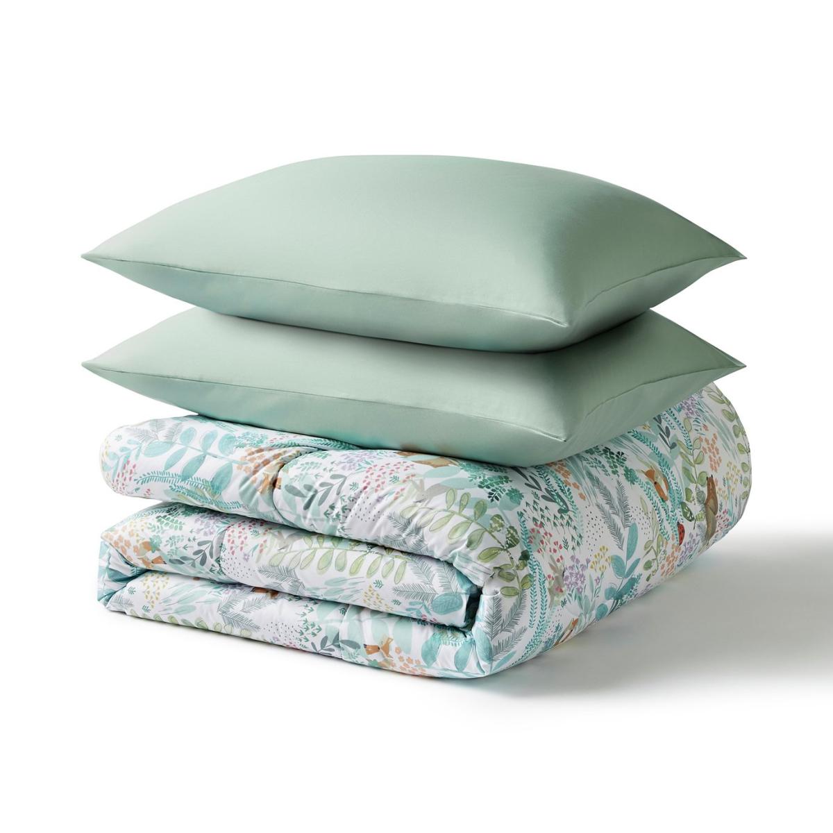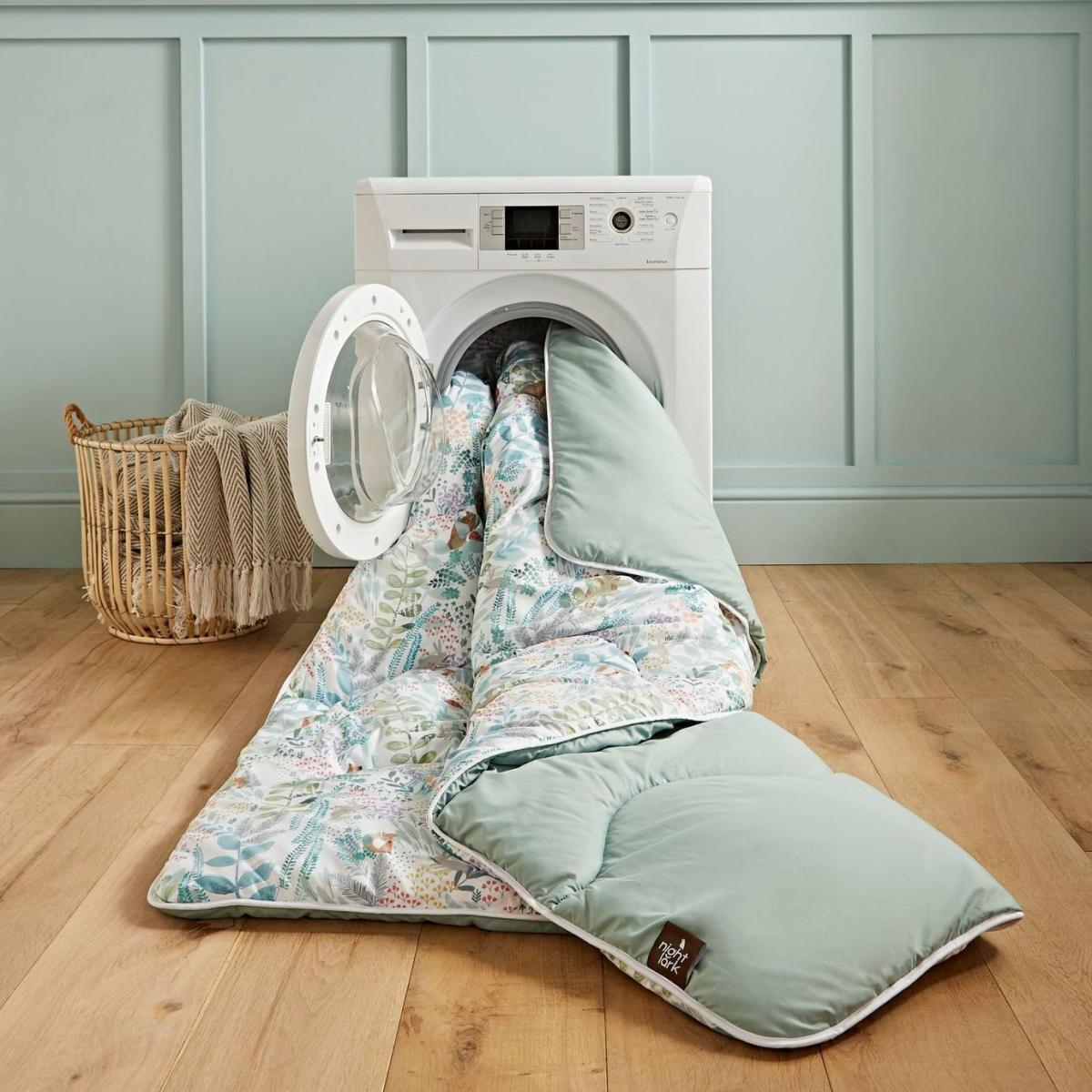 Make bedtime simple with the Junior Coverless Duvet Set. With a built-in cover, it washes easily and dries in just 60 minutes—perfect for quick turnarounds after night-time accidents. No separate cover needed! Featuring our playful Into The Woods design with peekaboo woodland animals. Filled with soft, hypoallergenic Smartfil fibres made from recycled PET bottles. Comes in a reusable duffle bag. Pillowcase included. Ideal for little ones and busy laundry days. Set includes Duvet and 2 X Pillowcases. 4.5 tog duvet. Cover made from 100% polyester. Filling made from 100% recycled polyester. Double bed. Duvet size L200, W200cm. Duvet weight 1.38kg. Machine washable. Suitable for tumble drying. Non-allergenic. Manufacturer's 1 yearguarantee.