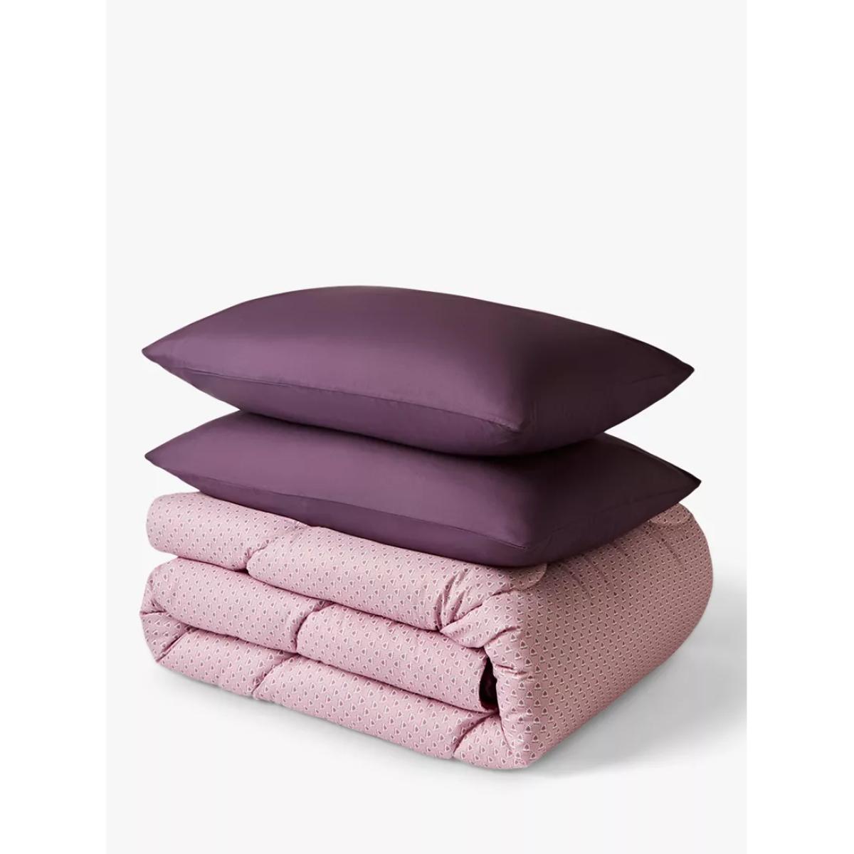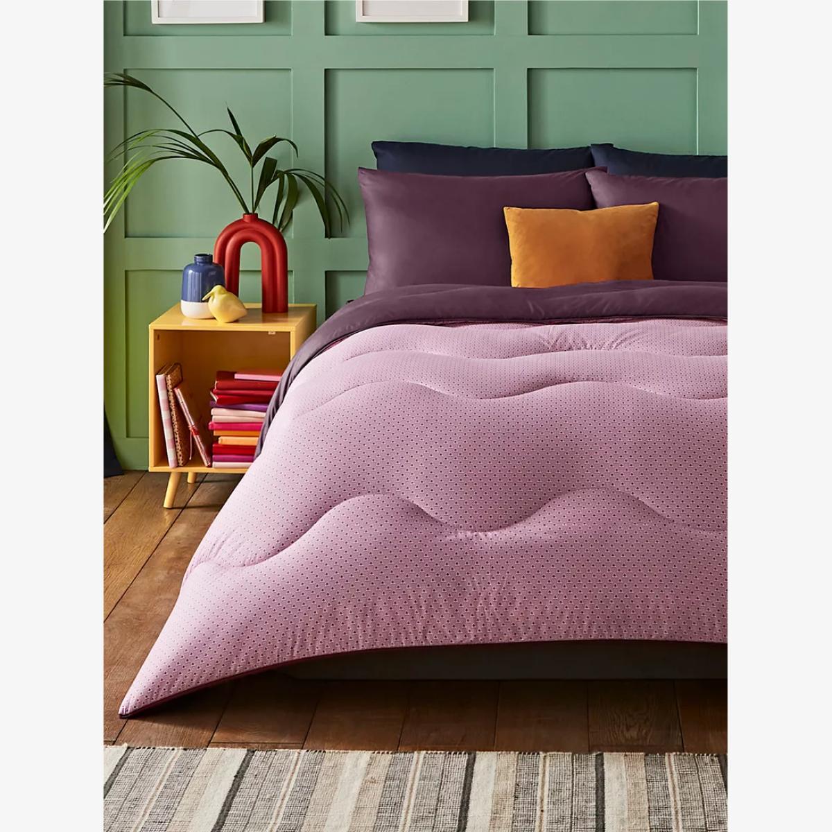 Experience an innovative bedding solution and take the hassle out of laundry and linen changes with the Night Lark® Coverless Duvet. This cosy duvet offers warmth without weight, and it's designed with an in-built, silky soft microfibre cover. It also comes in a handy reusable duffle bag. The soft Smartfil® filling is made from 100% recycled PET plastic bottles and it's both shape-retaining and ultra-washable. It's also quick-drying, so wash it at home and air or tumble dry it, and it will be back on your bed on the same day. The print on this coverless duvet features an array of delicate leaf patterns which will add a pretty touch of colour to your bedroom. Complete with co-ordinating pillowcases. The single includes one pillowcase and all other sizes include a pair Made in a B Corp™ certified European Eco Factory in Estonia