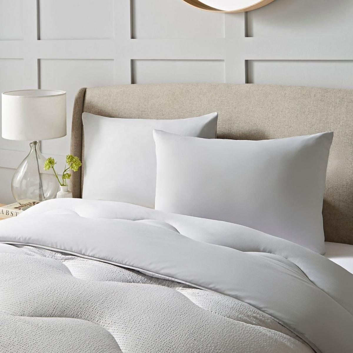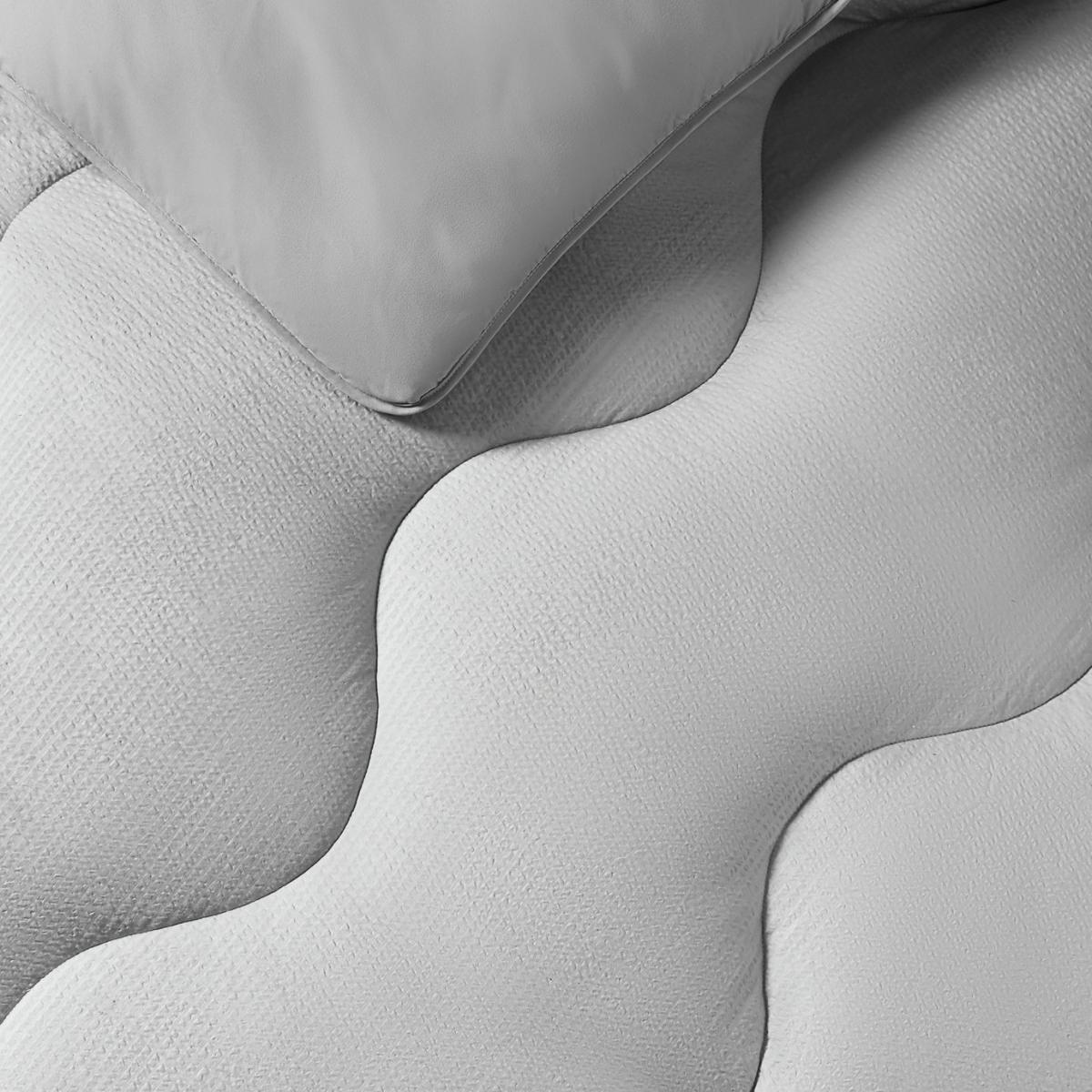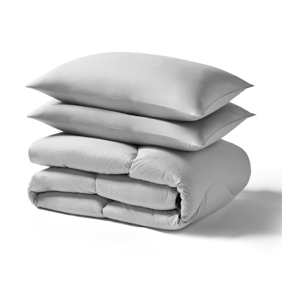 Cocoon into comfort with the Night Lark Seersucker Coverless Duvet Set, complete with colour-coordinated pillowcases. With a built-in cover, there's no need for a separate duvet cover, just wash, dry, and it's ready to go. Featuring classic seersucker stripes, it's filled with hypoallergenic Smartfil fibres made from recycled plastic bottles. Soft peachskin microfibre and bound edges add extra comfort. Made in a zero-waste eco-factory and packed in a handy reusable duffle bag. Set includes 1 x Duvet and 1 x Pillowcase. 10.5 tog duvet. Cover made from 100% polyester. Filling made from 100% recycled polyester. Single bed. Duvet size L200, W135cm. Duvet weight 1.47kg. Machine washable. Suitable for tumble drying. Line dry only. Non-allergenic. Manufacturer's 1 yearguarantee.