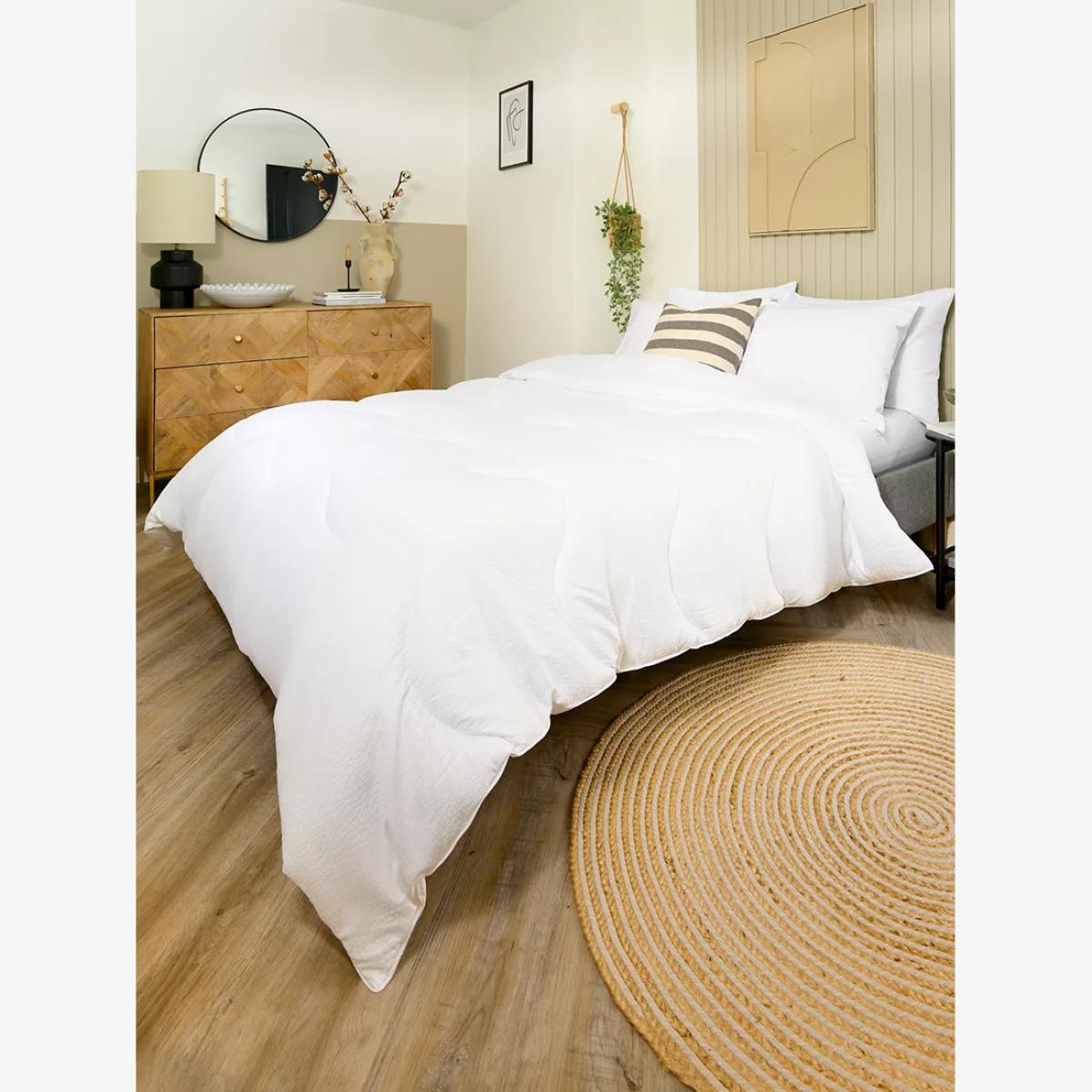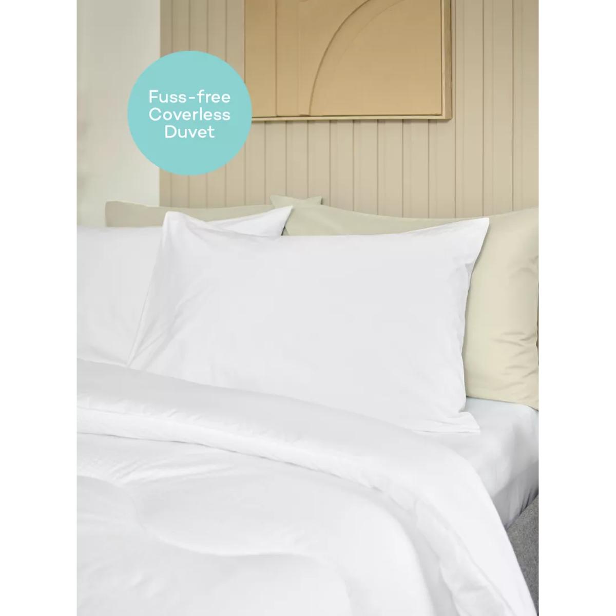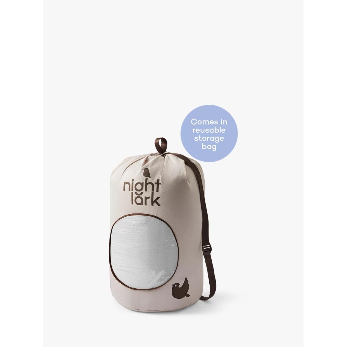 Experience an innovative bedding solution and take the hassle out of laundry and linen changes with the Night Lark® Coverless Duvet. This cosy duvet offers warmth without weight, and it's designed with an in-built, silky soft microfibre cover. It also comes in a handy reusable duffle bag. The soft Smartfil® filling is made from 100% recycled PET plastic bottles and it's both shape-retaining and ultra-washable. It's also quick-drying, so wash it at home and air or tumble dry it, and it will be back on your bed on the same day. This coverless duvet is designed with classic seersucker stripes, offering a stylish and versatile texture that will complement any bedroom. Complete with co-ordinating pillowcases. The single includes one pillowcase and all other sizes include a pair Made in a B Corp™ certified European Eco Factory in Estonia