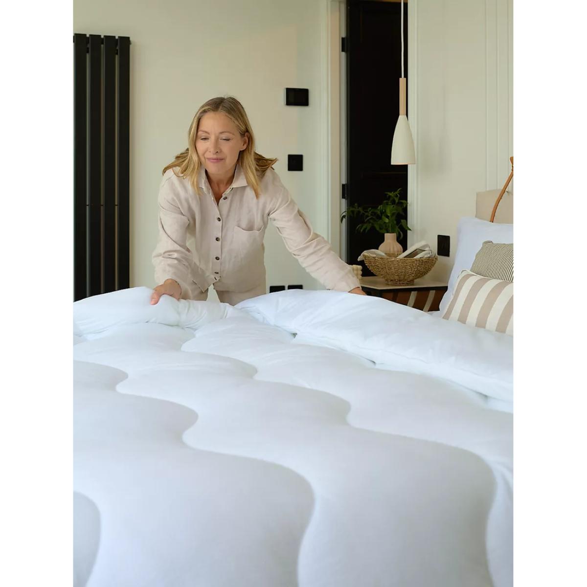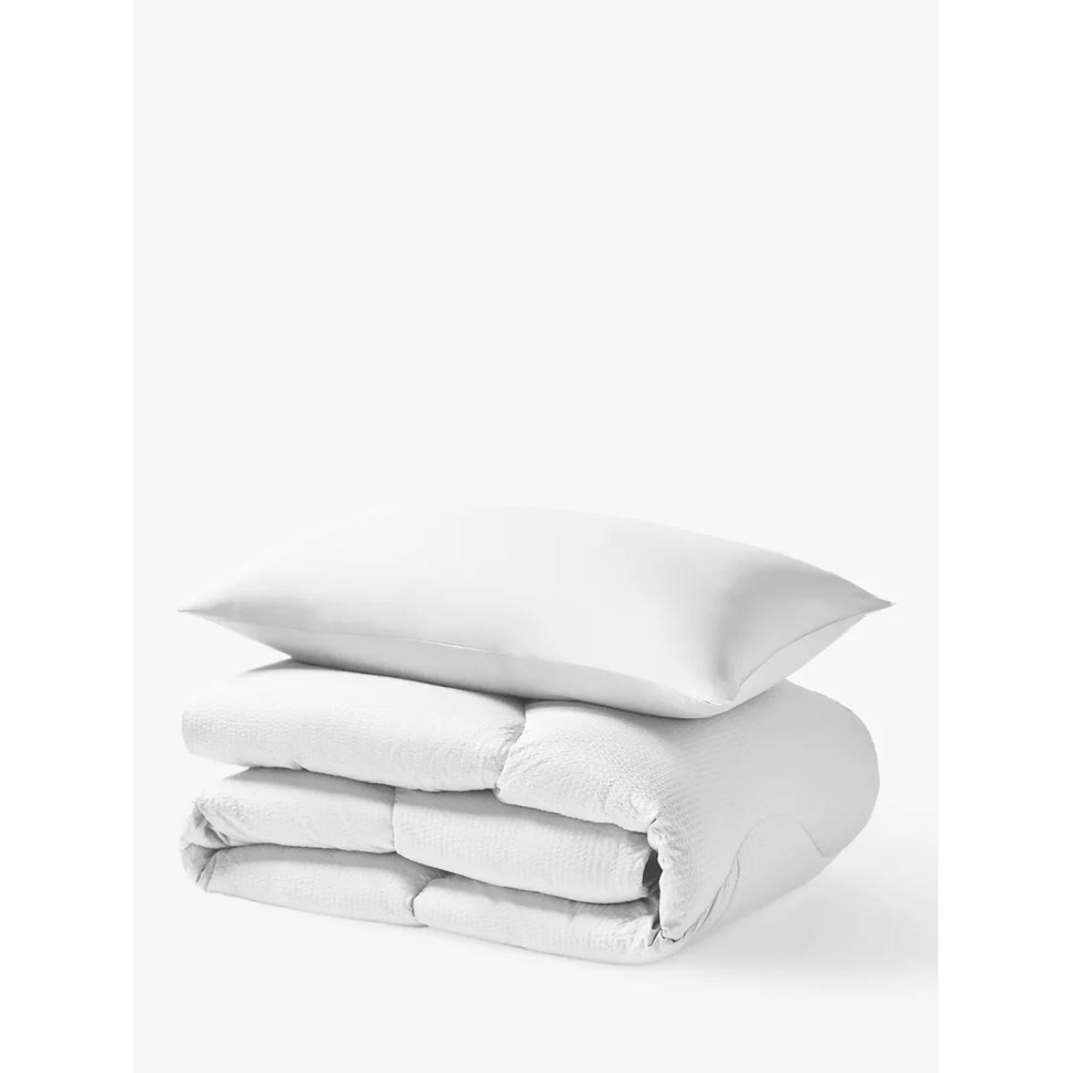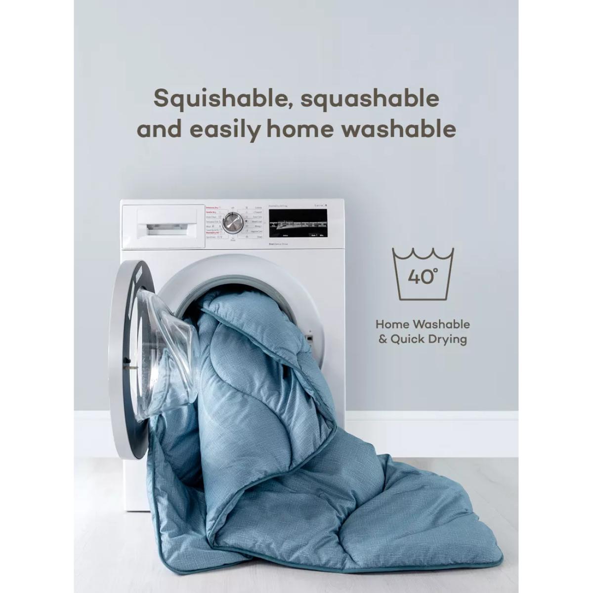 Experience an innovative bedding solution and take the hassle out of laundry and linen changes with the Night Lark® Coverless Duvet. This cosy duvet offers warmth without weight, and it's designed with an in-built, silky soft microfibre cover. It also comes in a handy reusable duffle bag. The soft Smartfil® filling is made from 100% recycled PET plastic bottles and it's both shape-retaining and ultra-washable. It's also quick-drying, so wash it at home and air or tumble dry it, and it will be back on your bed on the same day. This coverless duvet is designed with classic seersucker stripes, offering a stylish and versatile texture that will complement any bedroom. Complete with co-ordinating pillowcases. The single includes one pillowcase and all other sizes include a pair Made in a B Corp™ certified European Eco Factory in Estonia