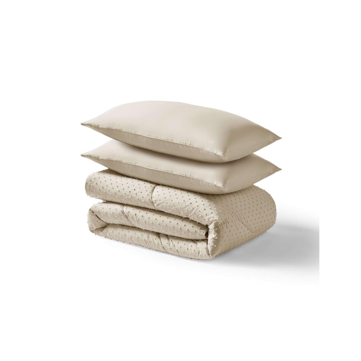 Sink into effortless comfort with this 10.5 tog coverless duvet and pillowcase set from Night Lark. This clever design removes the need for separate covers, combining a soft-touch outer with breathable Smartfil® fibres for warmth for a cloud-like feel. The tufted dot texture adds a tactile finish, while the peachskin microfibre gives a smooth, premium touch. Machine washable and quick-drying, it’s made for easy care and everyday luxury.