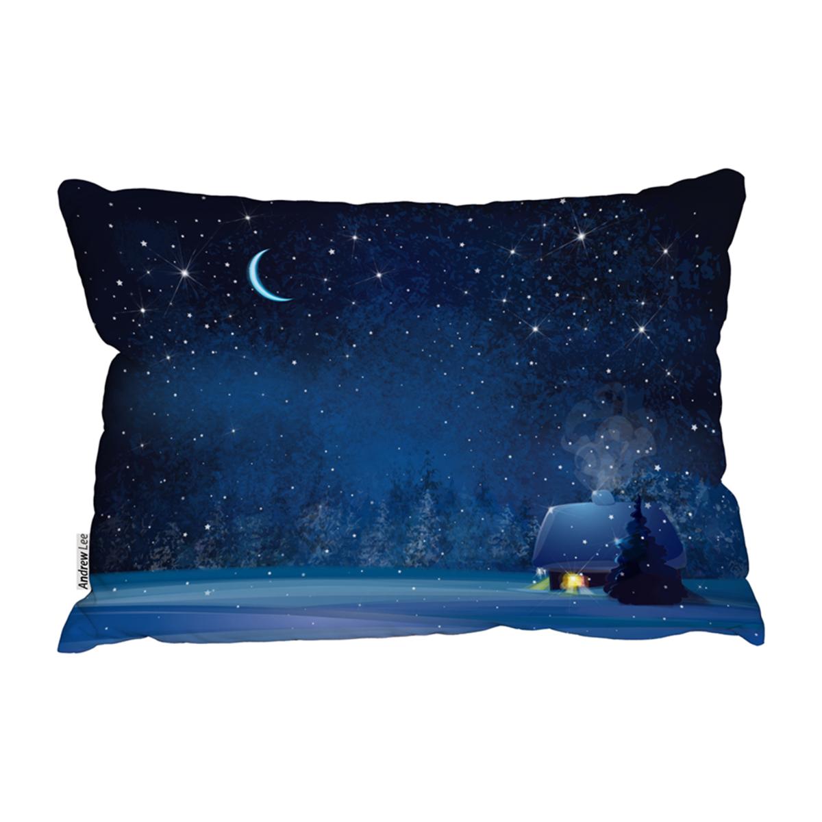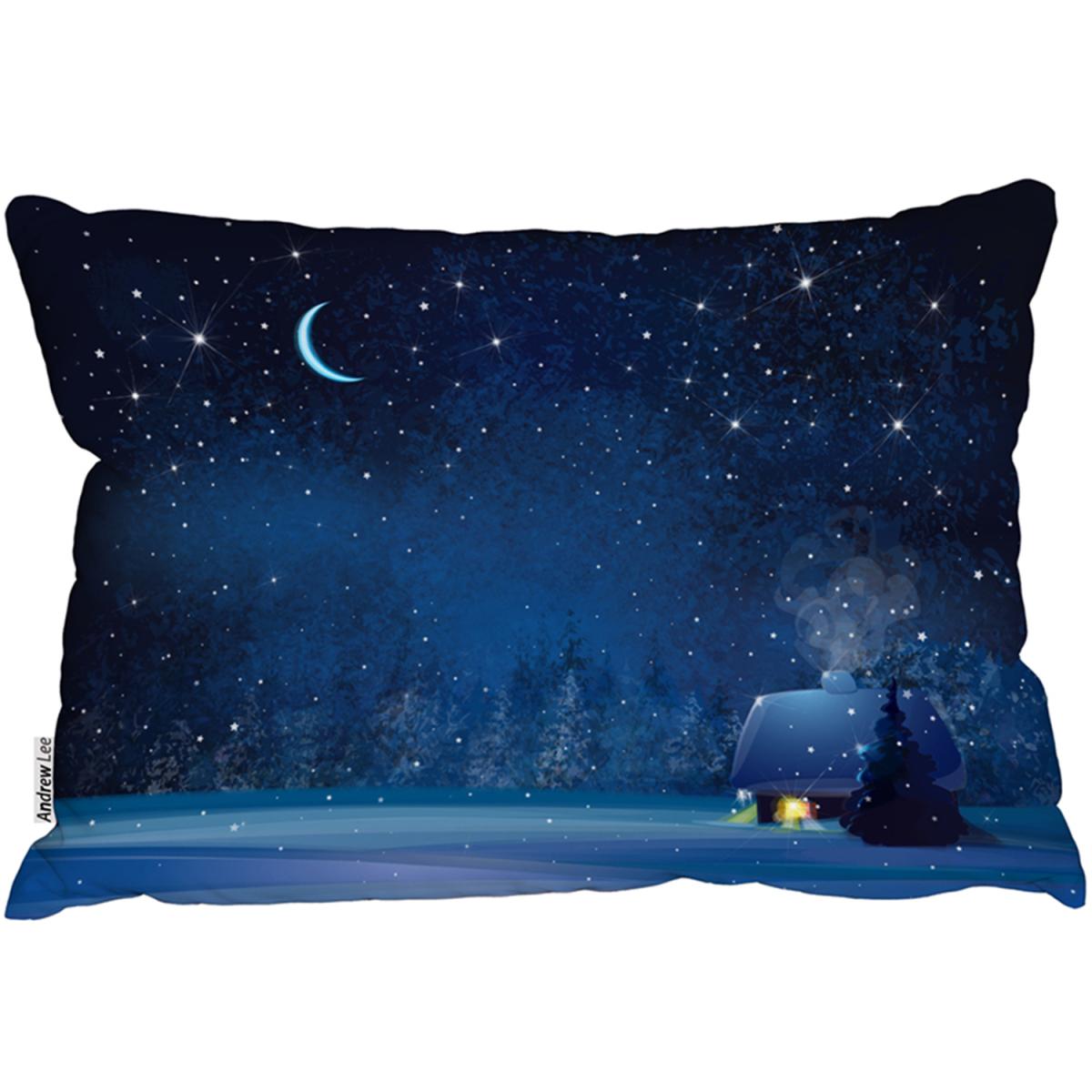 Night Winter Landscape Outdoor Comfy Cushion - Blue