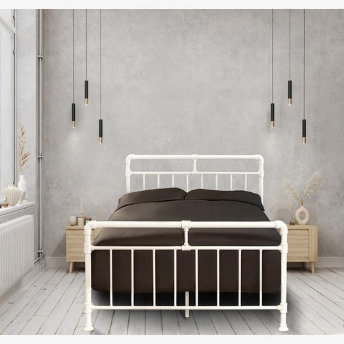 I love this bed frame for its versatile industrial aesthetic, which instantly adds a modern yet slightly raw edge to a bedroom. It's a great choice for those looking to cultivate a minimalist or urban-inspired interior, especially with its crisp white finish that brightens up the space. This frame works well in both contemporary and loft-style interiors, but can also be styled in a more eclectic way with layered textiles and vintage accents. Practical tips include keeping the bedding simple and neutral to let the frame stand out, and adding textured cushions or throws to soften the look without overwhelming the industrial vibe. Its straightforward design makes it easy to coordinate with various colour palettes and décor styles, making it a solid staple for a modern bedroom.