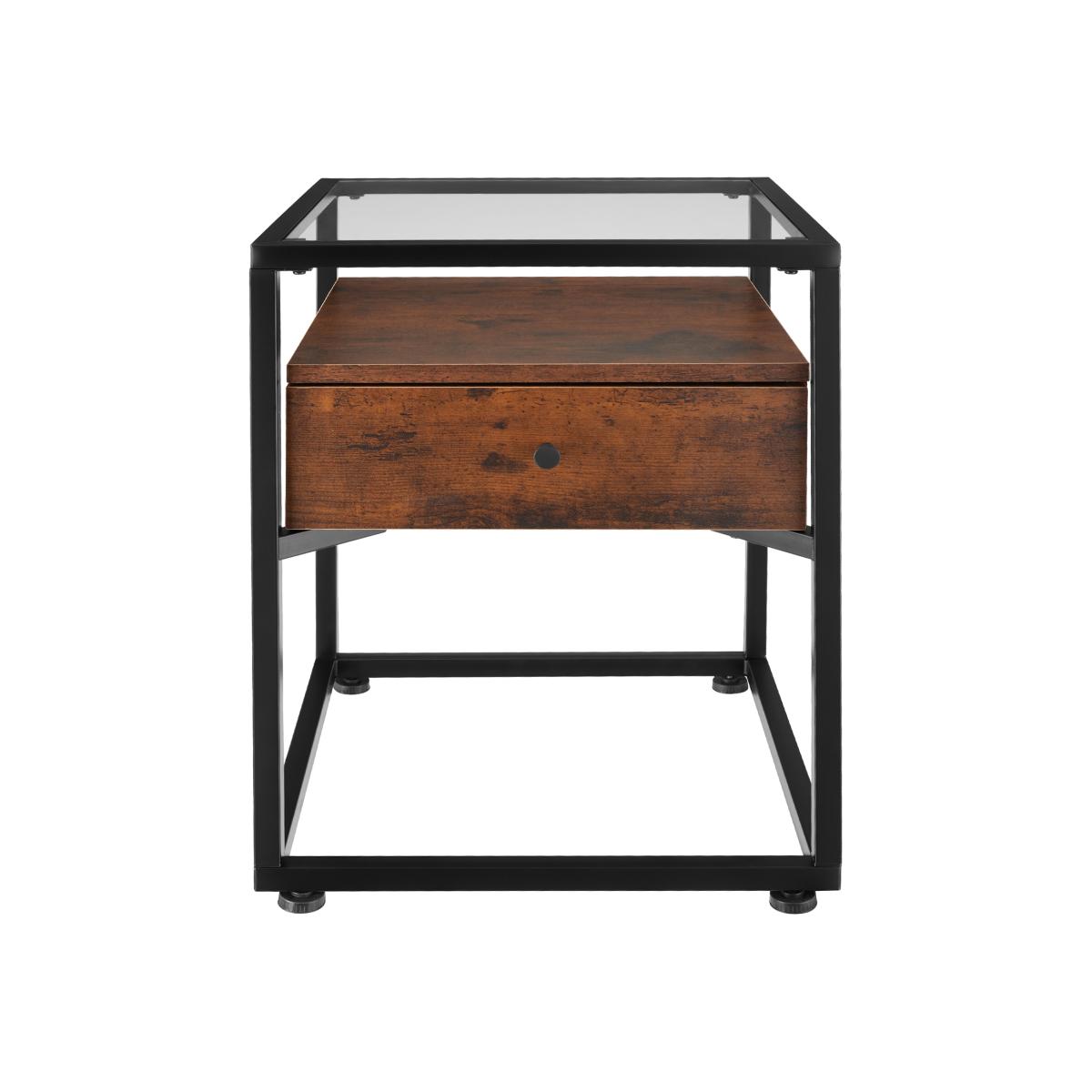 Nightstand Preston With Glass Surface and Drawer - Industrial Dark