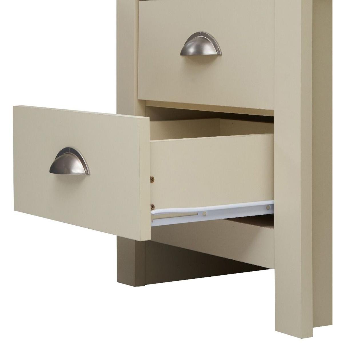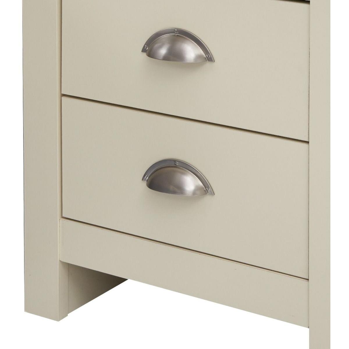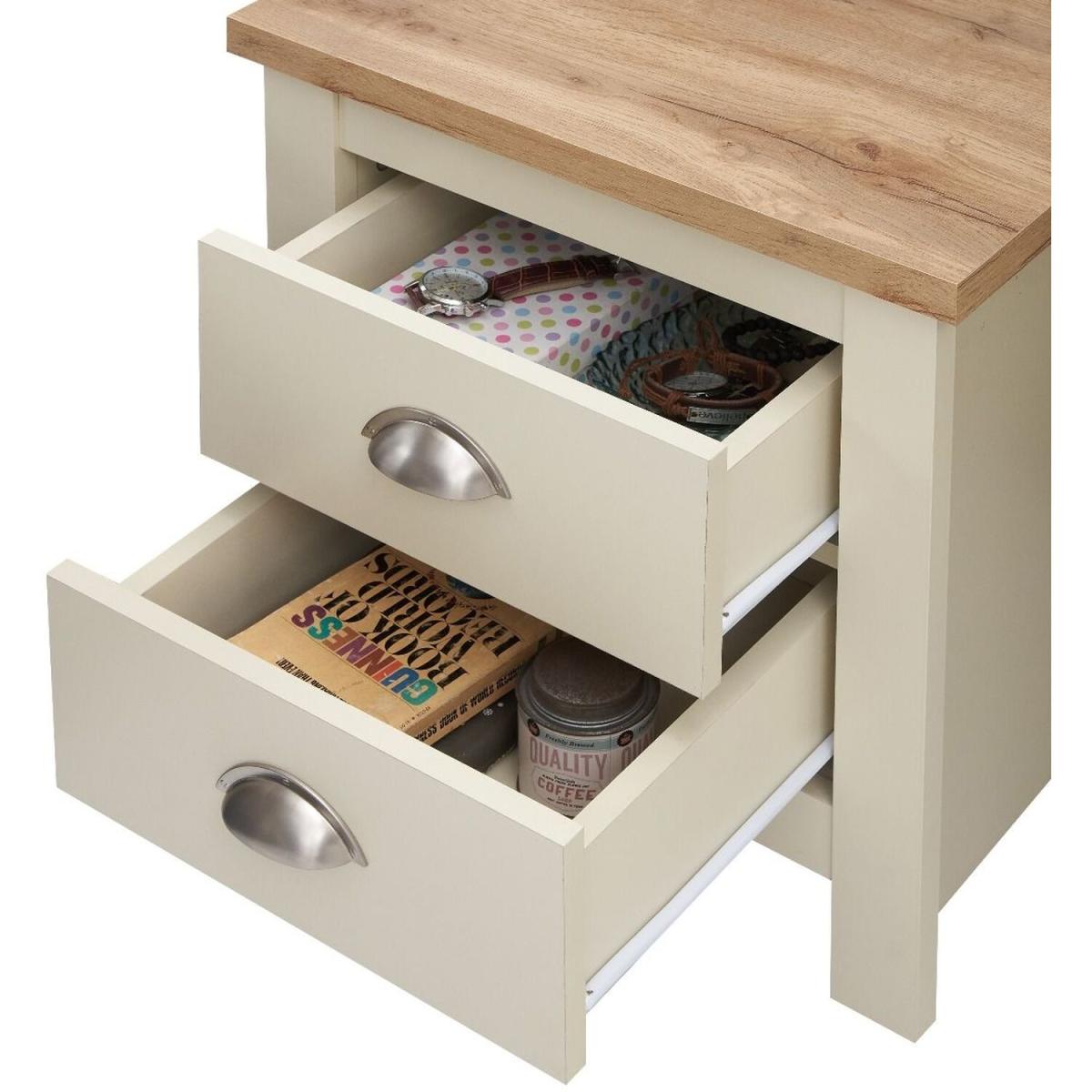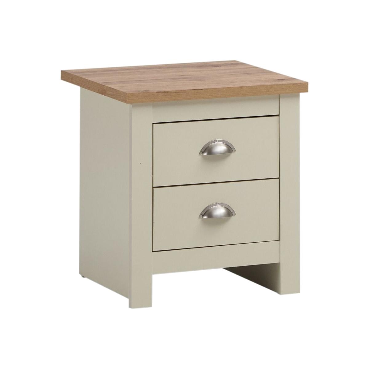 I like this cream bedside table for its clean lines and neutral finish - it works equally well in a classic scheme or a pared-back Scandi look. The oak-effect top brings warmth and the metal cup handles add just enough industrial flair, while two drawers keep bedtime clutter out of sight. Styling tip: top it with a small lamp, a neat stack of books and a low-drama potted plant for balance. If you prefer bolder contrasts, place it against darker bedding or a feature wall; for extra storage, tuck a slim basket beneath to hold magazines or spare throws.