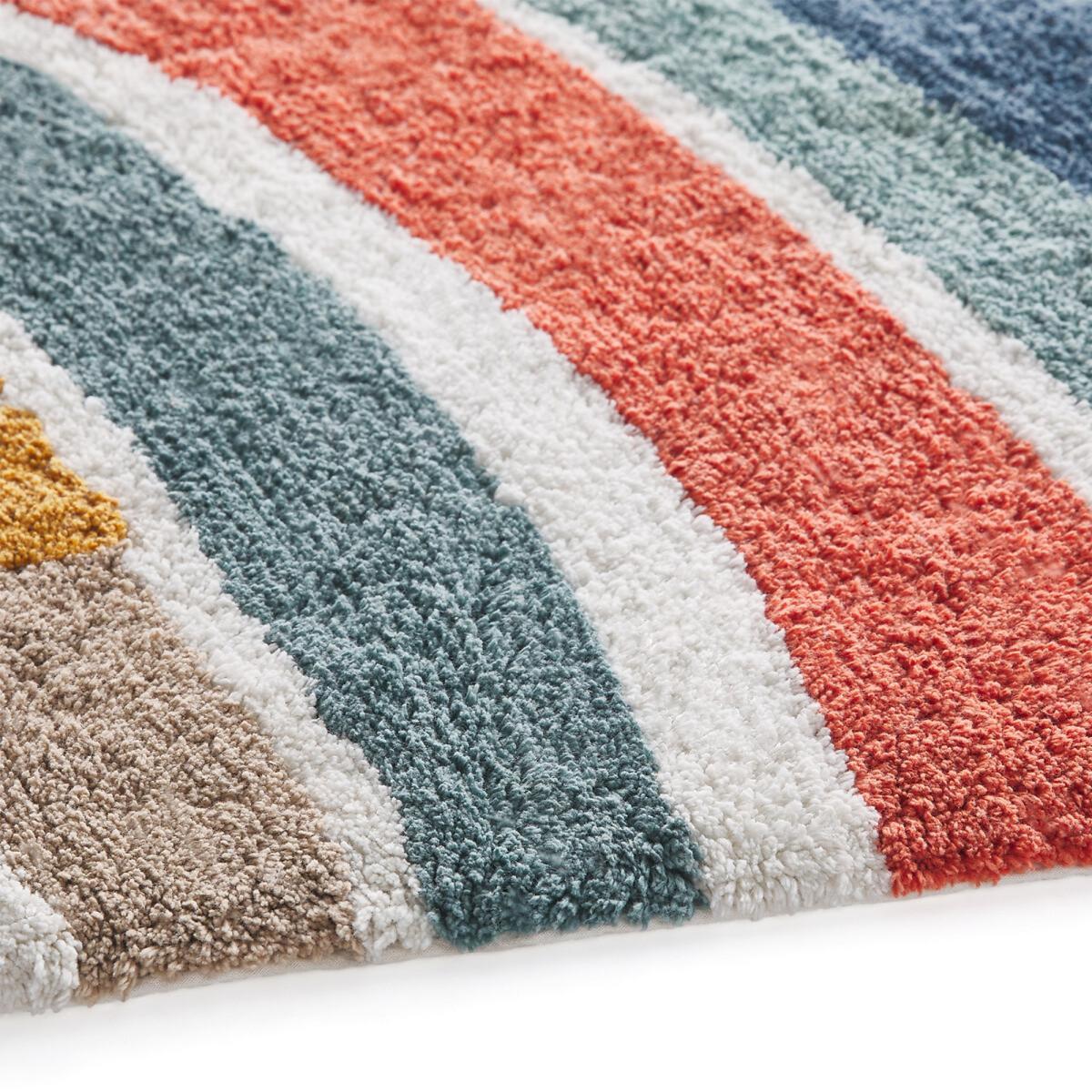 I love this rainbow rug for its playful yet versatile design, making it a perfect addition to a child's room or a cosy corner in a family living space. Its vibrant colours can inject energy into neutral interiors or complement more colourful schemes effortlessly. I recommend pairing it with simple furniture in natural woods or soft pastels to allow the rug to stand out. For practical styling, consider layering with cushions or throws in complementary shades and ensuring the rug is placed where it won’t see constant heavy wear, as it’s ideal for adding warmth and fun without sacrificing style. It’s an excellent choice for creating a lively, inviting atmosphere that’s both functional and visually appealing.