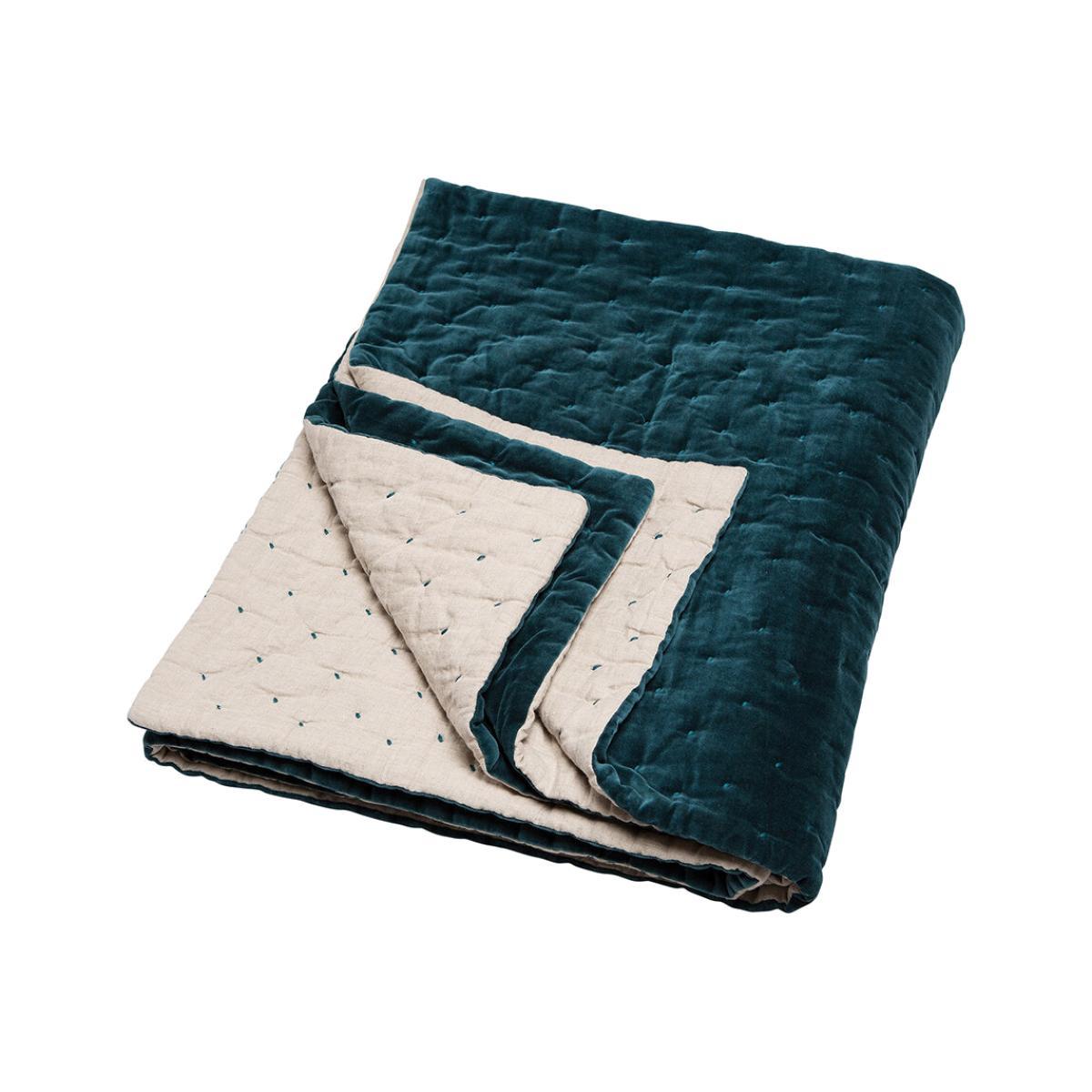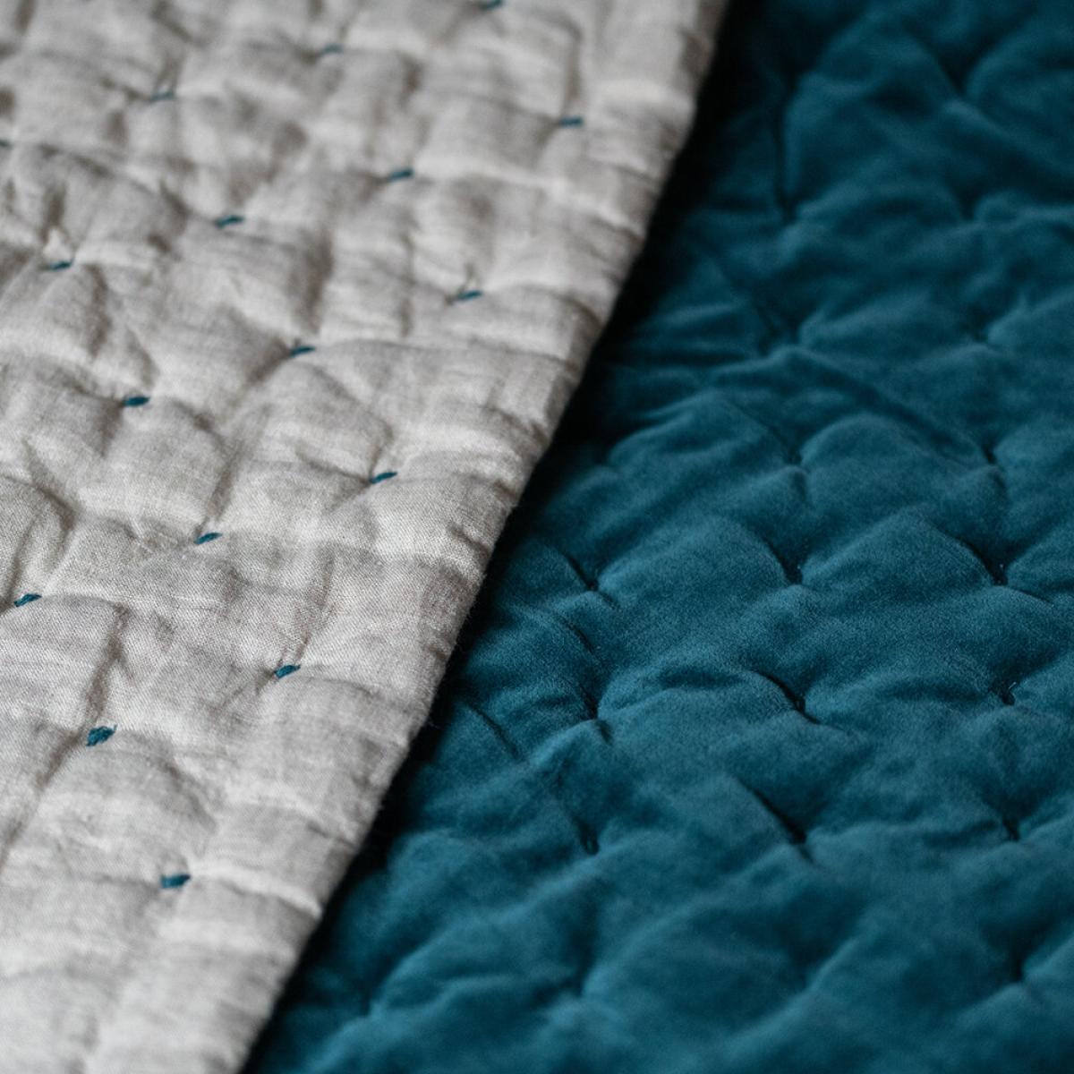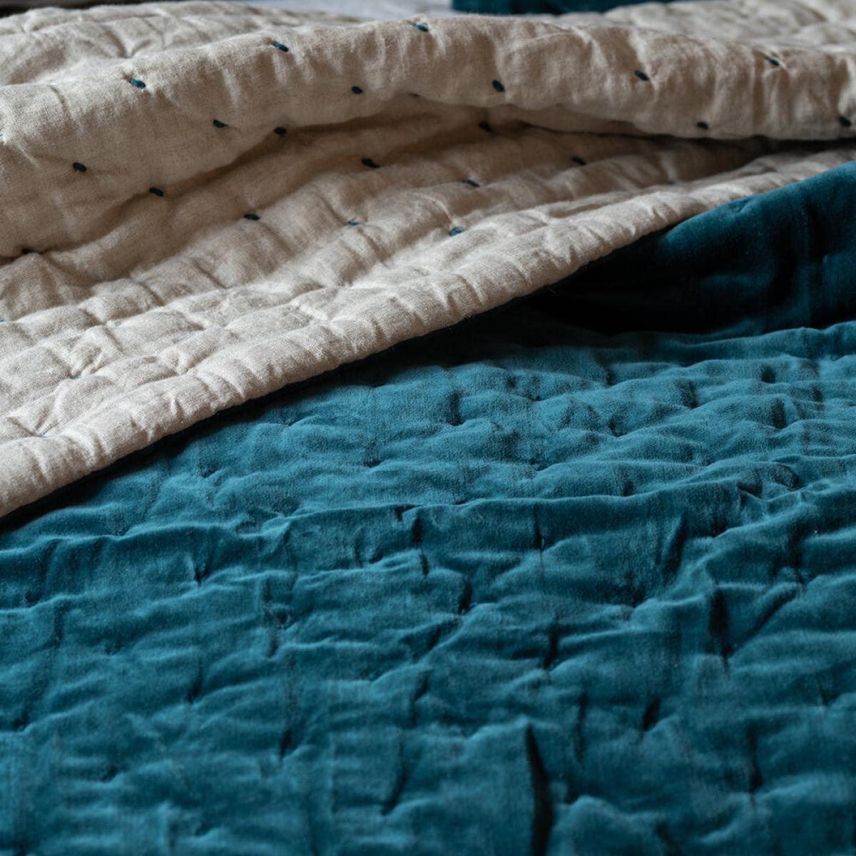Stylishly update your bed linen or sofa with this velvet linen quilted throw from Niki Jones. Featuring hand stitched quilting on a luxurious cotton velvet front with a natural linen reverse, this throw is available in a range of stunning colours to complement any interior style. Pair it with coordinating cushions available separately from Niki Jones to complete the look.