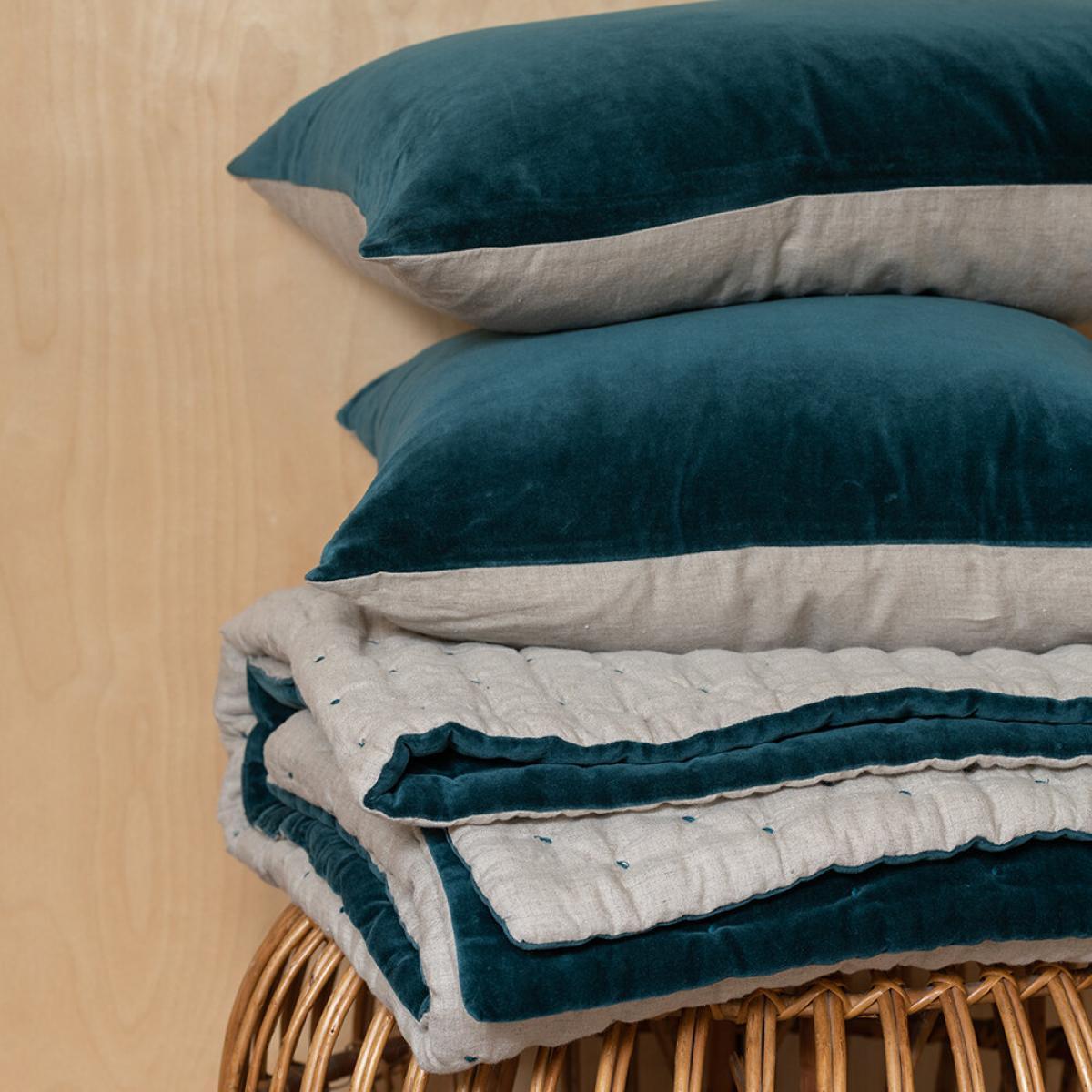 Niki Jones - Velvet Linen Cushion - 50x50cm - Lomond Teal & Natural