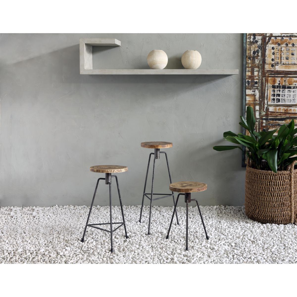 A raw, industrial style for this workshop stool with its vintage accents. It has a thick solid wooden seat, made from a length of old wood which is then waxed: each item is unique. The Nikita stool showcases wood in its raw state: the defects which are generally glossed over here are highlighted and shown off. Directly cut wood retains its fine grain. As the seat is made by hand using a natural material, there may be variations in colour or more or less significant irregularities: that’s what creates the charm of this authentic piece of furniture. The knots and irregular contours of the seat are the ingredients of a primitive aesthetic that draws a link between present and past. The asymmetrical base consists of twisted steel rods, usually used as a structure for pouring reinforced concrete. It’s a material with a very raw, industrial aesthetic. Zeus furniture is made by skilled craftsmen in Italy, near Modena. Each piece is made by hand: the metal is cut, assembled, welded and painted by hand. Each item is unique. Steel is a recyclable material and any metal scrap not used during manufacturing is recycled for re-use. Zeus furniture is built to last: highly durable, this furniture can be handed down from generation to generation.