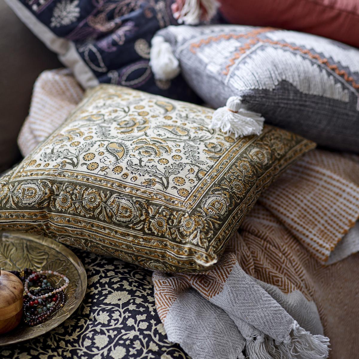 We love the bohemian, vintage look of this cushion with its oriental patterns, resembling a Persian carpet. The design features a range of muted, retro colours. The Nill cushion, which is inspired by the world of travel, encounters and nomadic adventure, will bring a poetic and exotic feel to your interior. It will lend a warm, cosy touch to any home.
