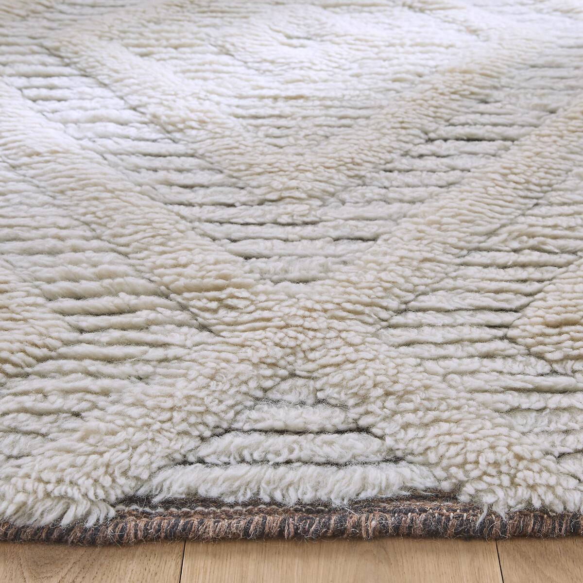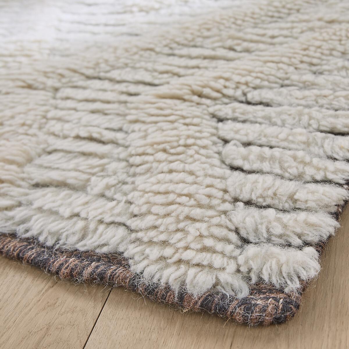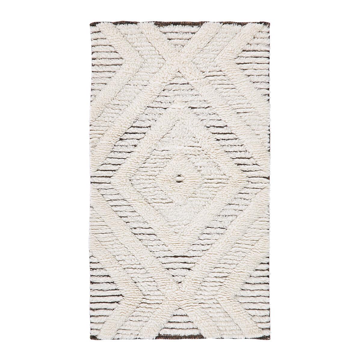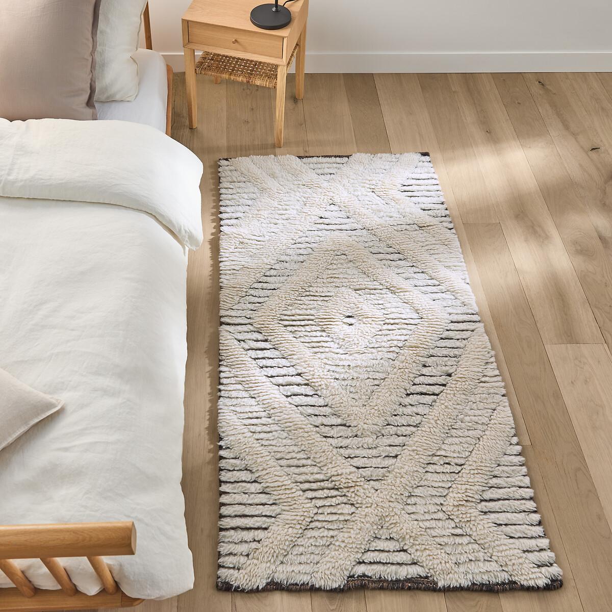 The Nilou Berber-style rug. A superb traditional, graphic pattern worked in relief in soft materials for this rug available in a bedside rug version. A contemporary interpretation of the Berber spirit. High quality, AMPM rugs are handcrafted. A decorative rug can offer thermal and sound insulation, as well as a warm and cosy atmosphere. Product Details • 94% wool, 6% cotton • Handmade in India • Weight: 1600-1800g/m² • Pile height: 20 - 22mm. Care Advice • Some materials such as wool are very fibrous and you can actually observe a piling during the first weeks of use: this is a normal for this type of product and is not a defect. Remove the excess fibres by hand where possible, do not use a vacuum cleaner with a rotating brush as this can pull and tear the fibres. The pilling will improve over time. • For maintenance, we advise you to vacuum it very little the first month and then to vacuum it without rubbing too much always without using the brush. • Remove any stains immediately with a clean, damp cloth. • Dry clean recommended. Quality Info • Wool is a warm and comfortable fibre. In addition to being hard-wearing, the wool carpet is also an excellent thermal and sound insulator.. Sizes • Width: 80cm • Length: 150cm • OEKO-TEX® Standard 100. Standard 100 certification by OEKO-TEX® tests textile products for harmful substances via an independent, international label. Dimensions and weight of parcel • L84 x H16 x D16cm, 6kg