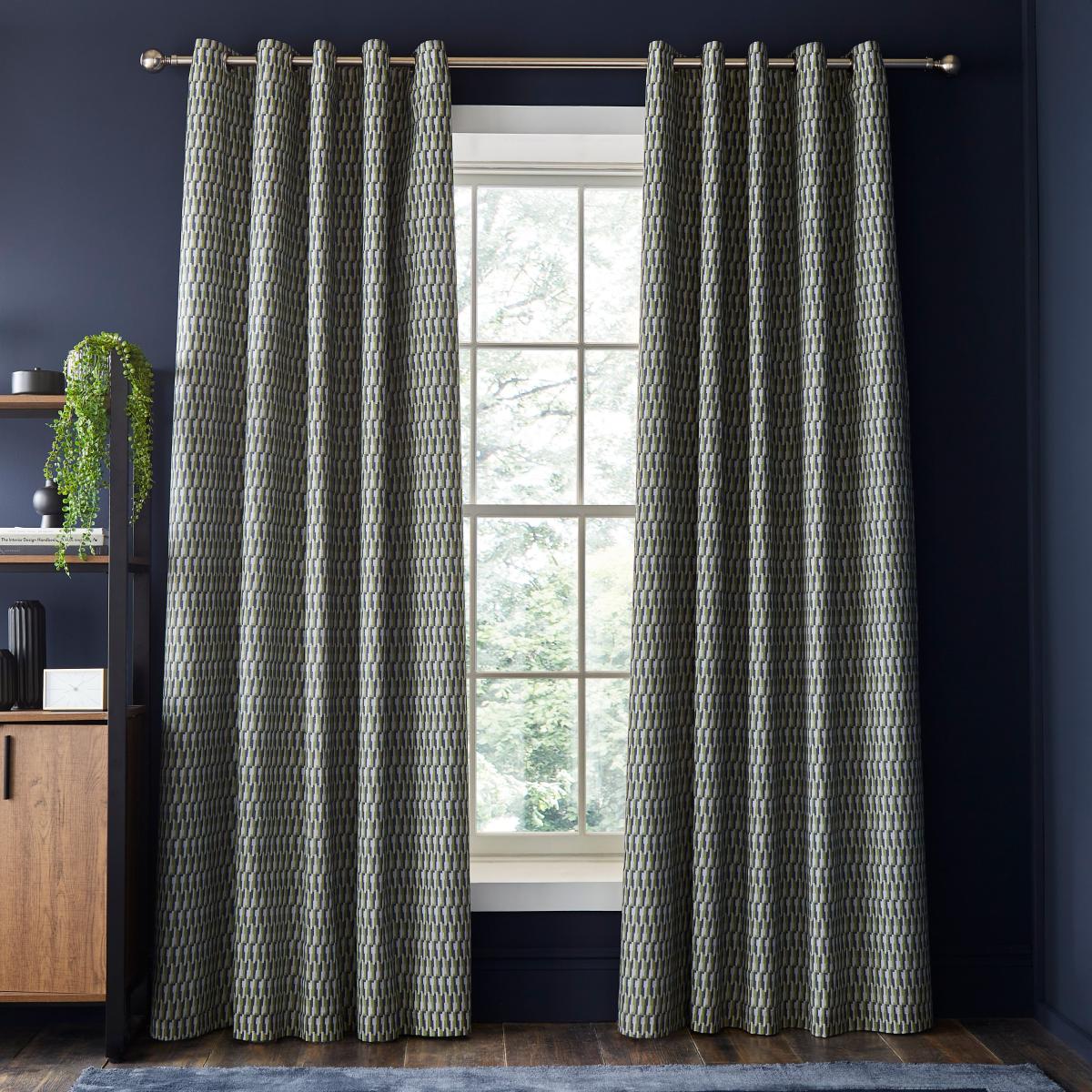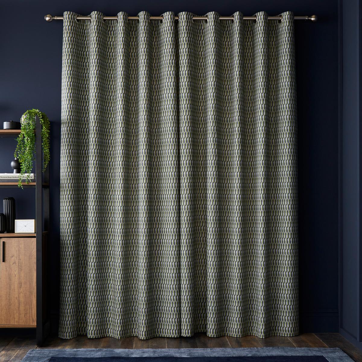 I love these Neil curtains for their bold, geometric pattern and modern black finish-they bring a contemporary edge to any room. They work well in minimalist or Scandinavian-inspired interiors where clean lines and monochrome accents dominate. When styling, consider keeping the surrounding décor simple to let the pattern stand out, or add pops of colour that pick up the green or grey tones in the design. Practical tip: these blackout curtains are perfect for bedrooms or media rooms, offering both style and function by blocking out light and reducing noise. They look especially striking when paired with sleek curtain poles and minimal hardware for a streamlined look.