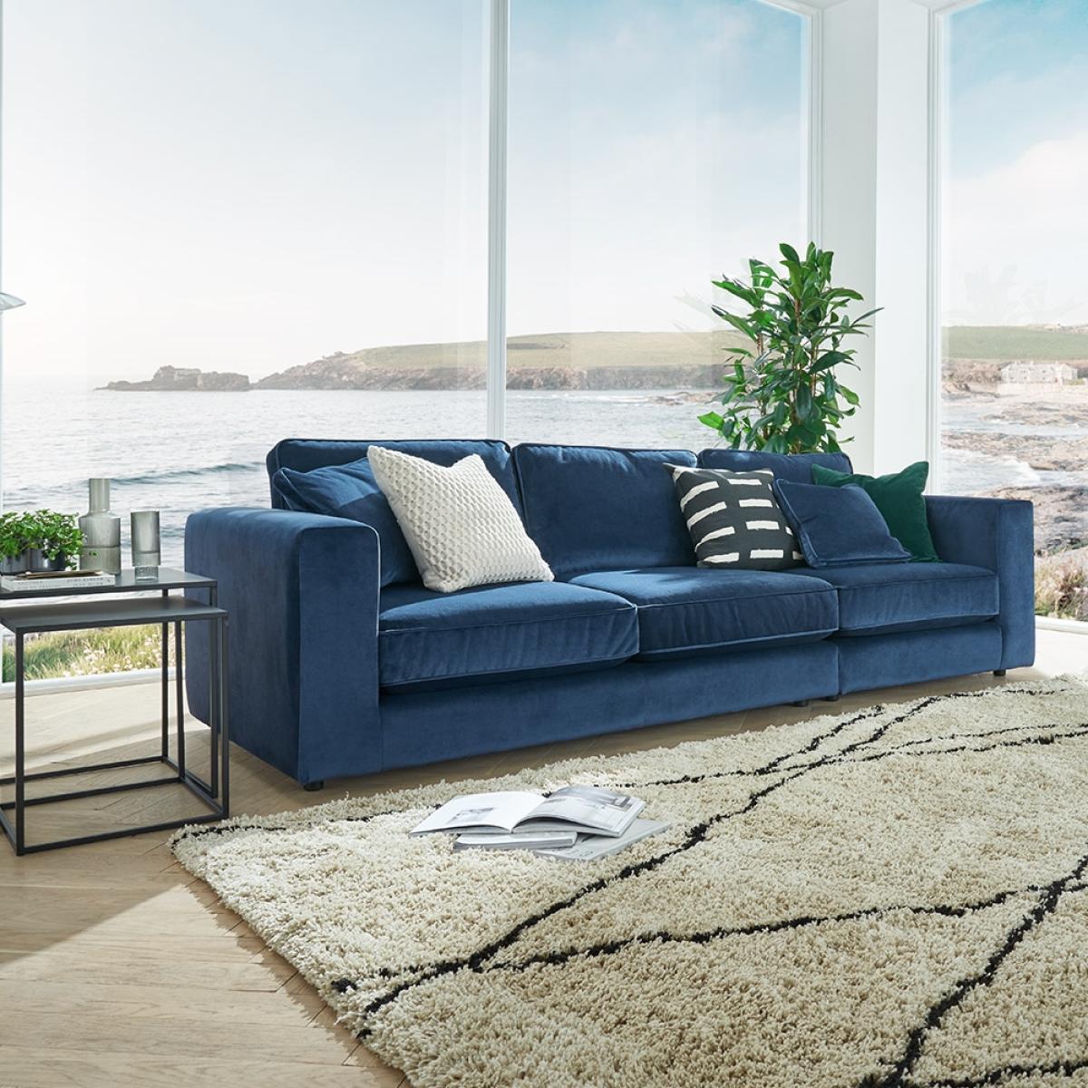 Bold, stylish and practical - the Nimbus Modular 3 Seater Sofa can be adapted to suit your space. Handcrafted with care in the UK; the Nimbus low sofa has been designed with box arms, deep seats, slightly angled backs, piped edges and scatter cushions - making this one comfortable spot to cosy up! Starting out as a three seater sofa; extra modular sections can be added to your set to create any configuration you think up! With corner sections, chaise longue and middle modular pieces to choose from, you can just keep on adding until you've created your dream sofa set. As the furniture is all modular, if you were head-scratching trying to devise a way of getting a large sofa into your home, these individual sofa sections become much more manageable and easily slot together. Style yours with a choice of luxurious upholstered fabrics in an array of colours. With deep velvets, textured bouclé and neutral muted linens, there is a Nimbus sofa for every home!.