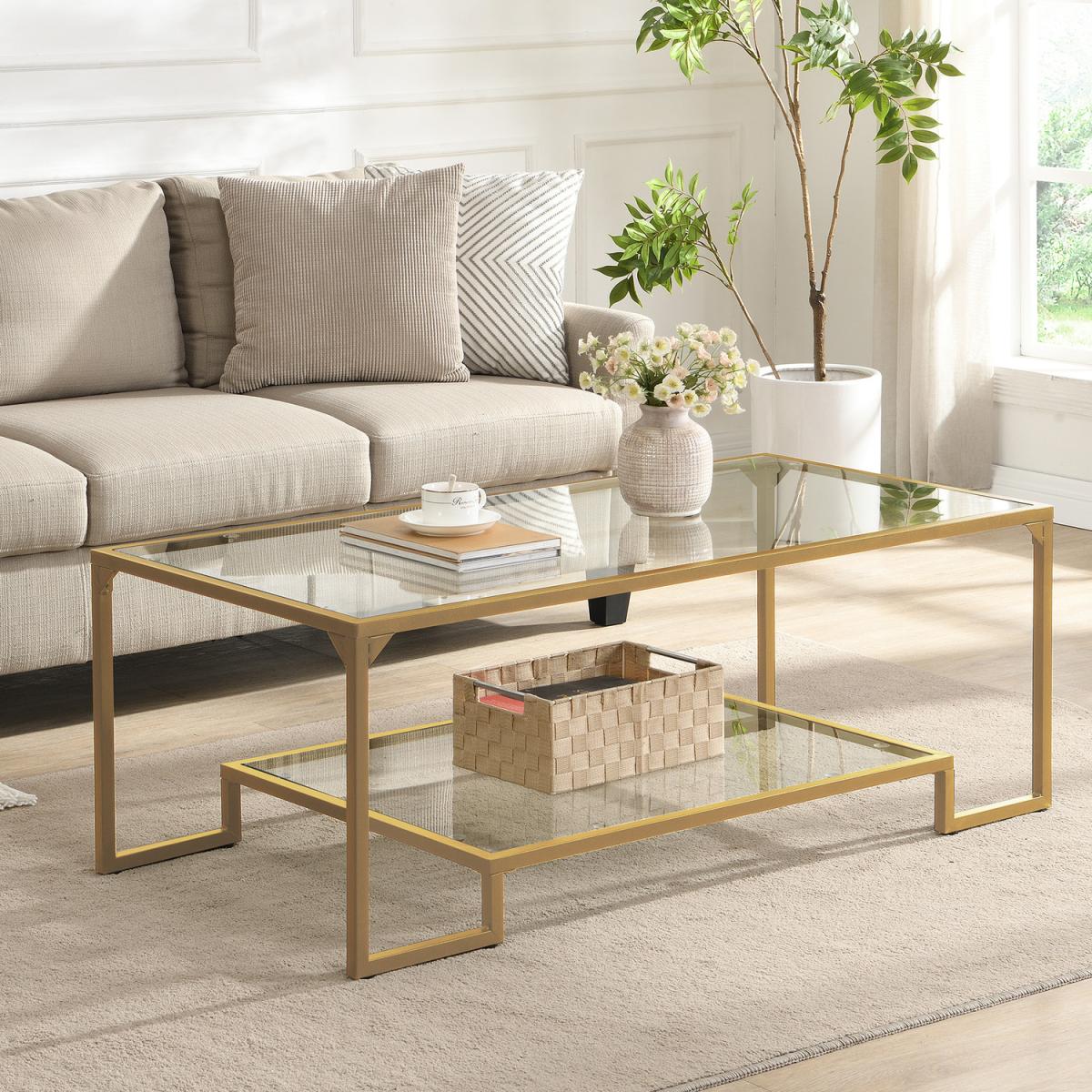 The Nimbus Glass Rectangular Coffee Table is a stylish and functional 120cm x 60cm coffee table, perfect for adding a touch of luxury to any living room. Featuring a durable tempered glass top, it offers a sleek and modern design, while the golden powder-coated metal frame brings an elegant, sophisticated finish. The glass shelf underneath provides practical storage for books, magazines, or decorative items, helping to keep your space organized. Ideal for creating a chic focal point in your home, this table combines style and utility. Plus, with our quick and efficient delivery, transforming your living space has never been easier.