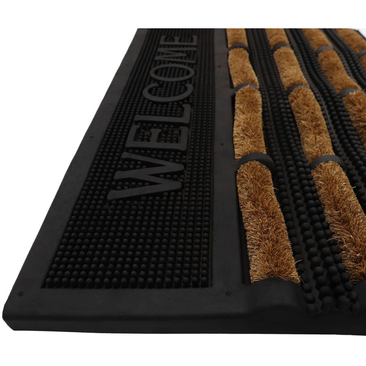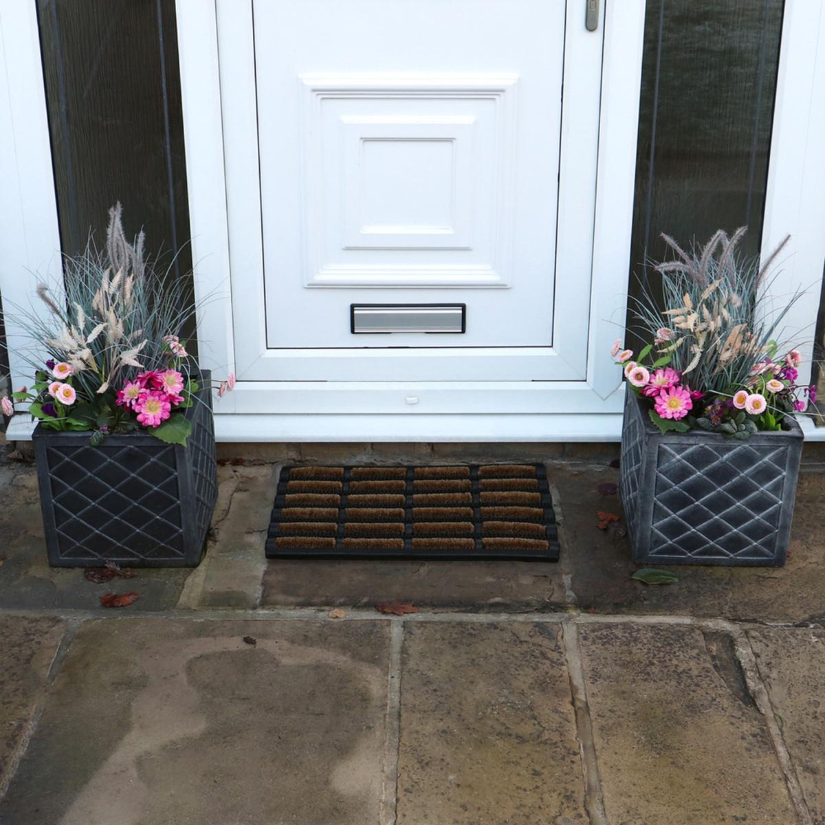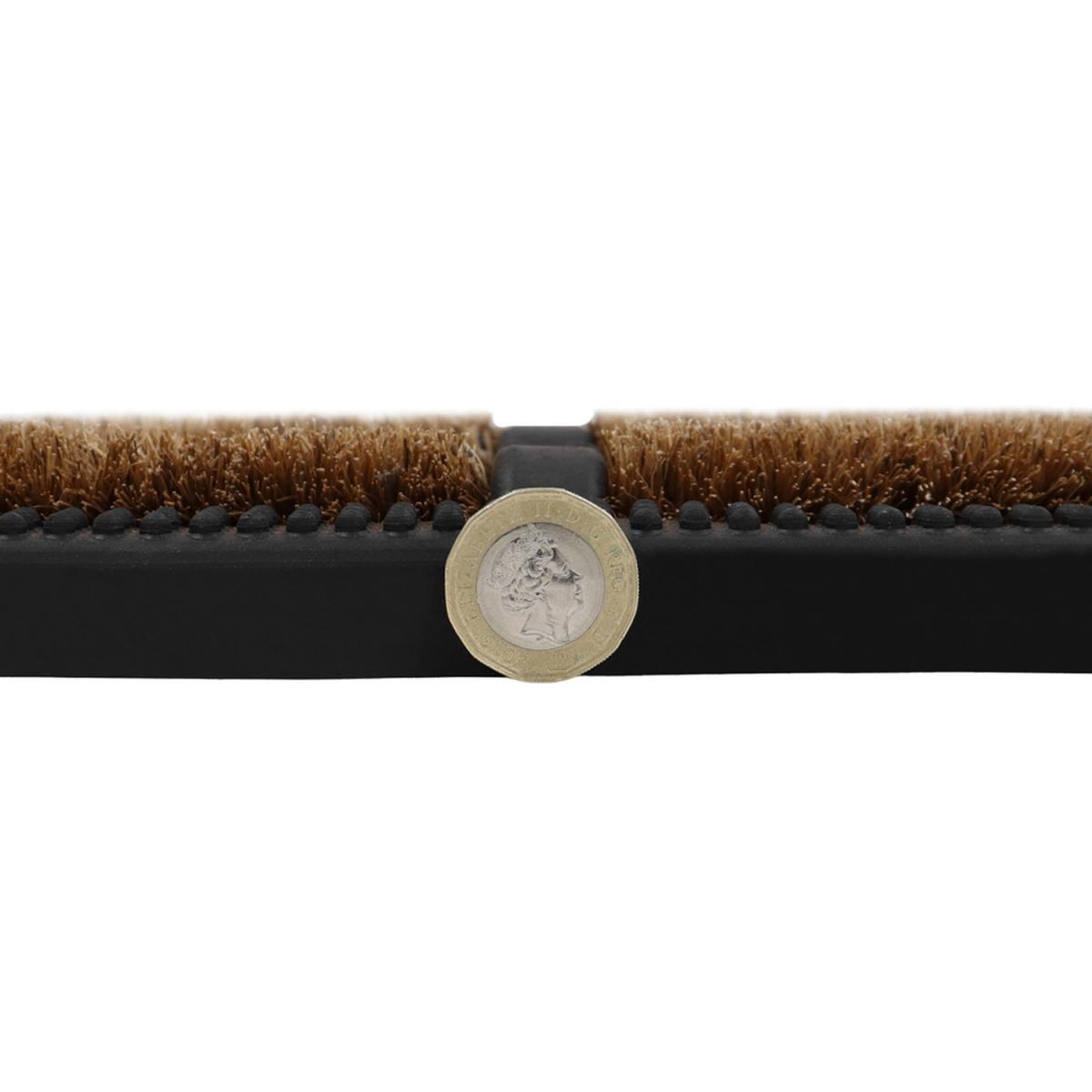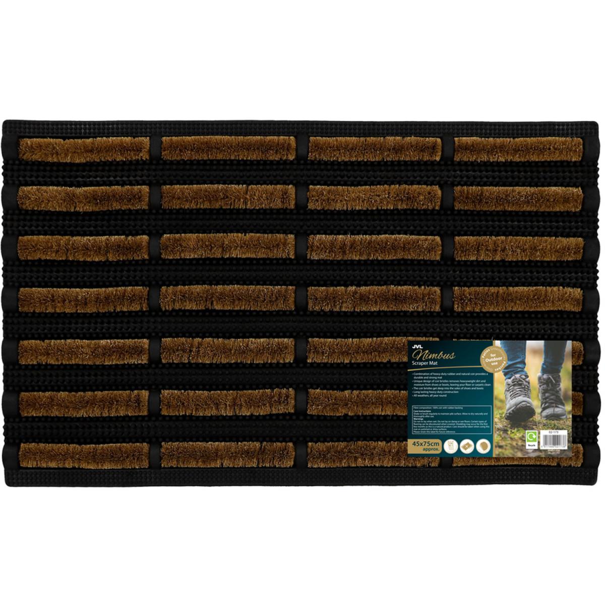 Our best-selling doormat is the king of all scraper mats, Nimbus! This combination of heavy-duty rubber and natural coir, coconut husk fibres, provide a durable and strong mat that will withstand all weathers. The unique design of coir bristles act like a roller and ensures most of the grass, mud and dirt is removed from your footwear. The flexible rubber studs trap dirt and grit from shoes meaning it does not walk in the home, leaving your floors clean. Plus, it has minimal maintenance, simply shake or brush to clean. The combination of materials on the mat are long lasting and durable making the doormat suitable for use in all weathers. Please note, colours may vary slightly from the pictures shown as this is a natural product.