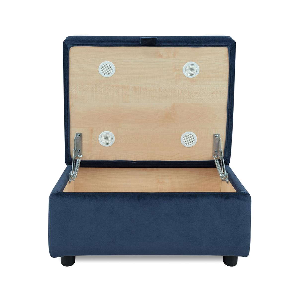 TheNimbus Storage Ottoman has a hidden compartment! Styled in your choice of upholstered fabrics, the cushioned foot rest opens up to reveal a spacious storage box. Organise remote controls, store books or even hide a stash of biccies - ready for your next sit down. The ventilated, hinged lid includes a handy tab for easy access to your living room essentials. Designed to be paired with the Nimbus sofa collection, it would just as easily fit in with your existing furniture. No sitting room is complete without a footstool!.