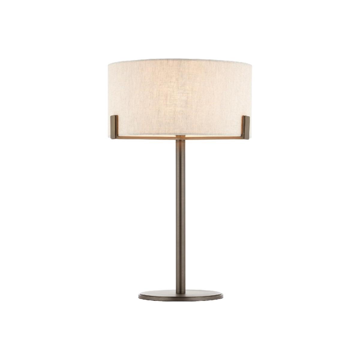 Chic decors need sophisticated lighting to match - cue the Nina table lamp. This contemporary table lamp design is a fabulous blend of the industrial and the natural, teaming a smooth bronze-finished metal base with a natural linen shade in cream. Pair the Nina with dark wooden furniture for an electric atmosphere, or team with its matching floor lamp for style continuity.