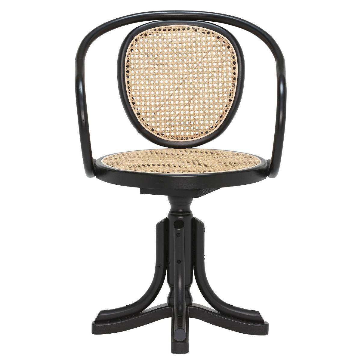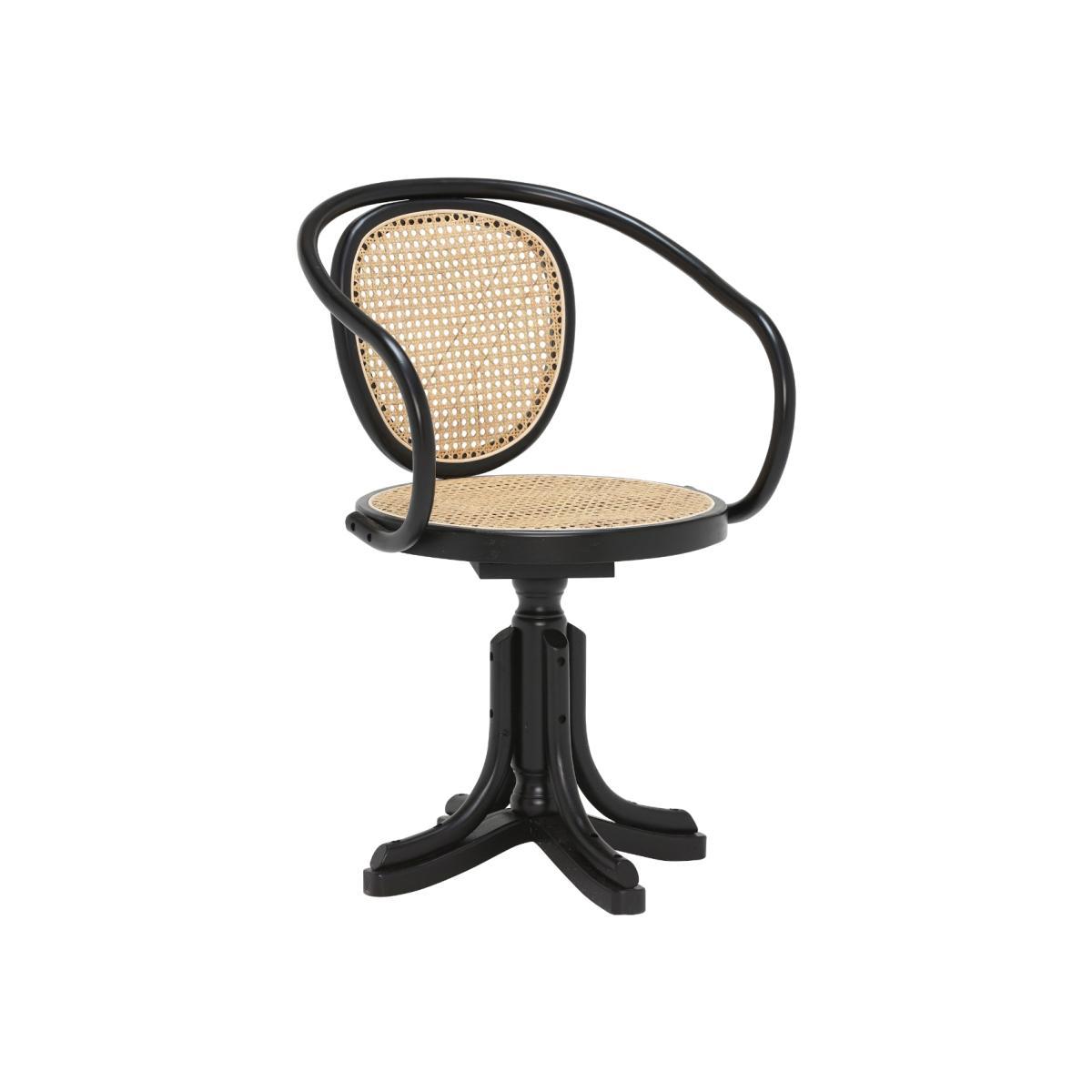Ningbo Swivel Chair - Black - Beech Wood - Rattan - W55 x D46 x H84cm - Barker & Stonehouse
