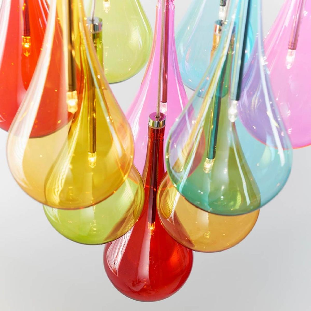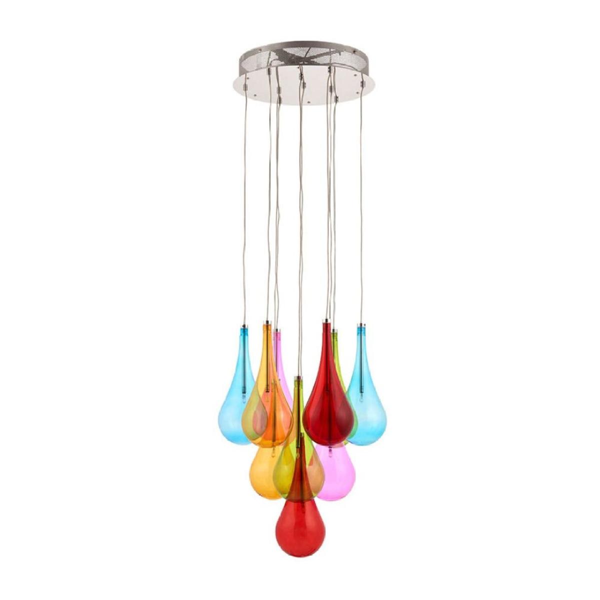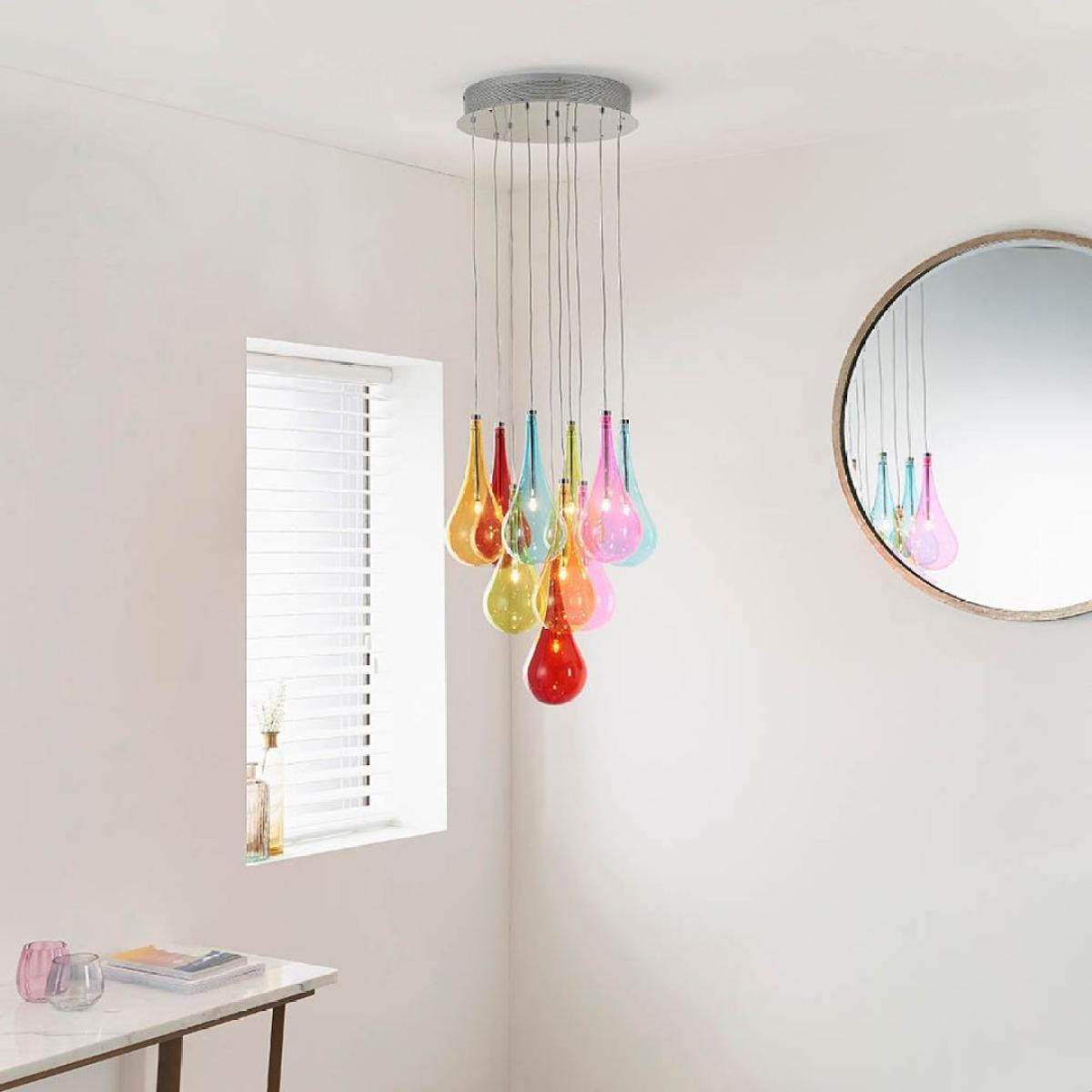 The Niro 10 Light Ceiling Light is a funky ceiling pendant light from Lighting. This ceiling light features 10 pendant lights encased in multi coloured glass shades. The lights suspend from the polished chrome ceiling plate at differing heights to showcase each of the different coloured shades. The delicate, tear drop shaped glass is transparent enough for the light to shine through while still casting different coloured light to create a beautiful effect. This ceiling pendant is a real statement light which the perfect finishing touch for any colourful and fun décor! The Niro 10 Light Ceiling Light suspends from the ceiling at a maximum height of 1200mm and measures 395mm in diameter. Requires 10 x G4 Capsule bulbs not exceeding 10w. Please note, this product is available via our website and Mail Order department only and is not stocked in our stores. The Niro 10 Light Ceiling Light is a funky ceiling pendant light from Lighting. This ceiling light features 10 pendant lights encased in multi coloured glass shades. The lights suspend from the polished chrome ceiling plate at differing heights to showcase each of the different coloured shades. The delicate, tear drop shaped glass is transparent enough for the light to shine through while still casting different coloured light to create a beautiful effect. This ceiling pendant is a real statement light which the perfect finishing touch for any colourful and fun décor! The Niro 10 Light Ceiling Light suspends from the ceiling at a maximum height of 1200mm and measures 395mm in diameter. Requires 10 x G4 Capsule bulbs not exceeding 10w. Please note, this product is available via our website and Mail Order department only and is not stocked in our stores.
