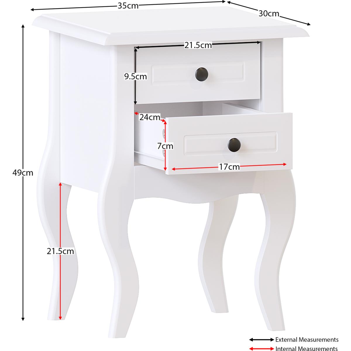 Nishano 2 Drawer Bedside Cabinet, White - White