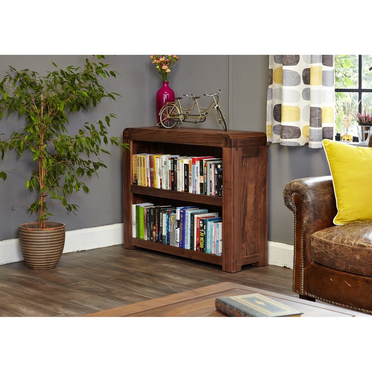 The exquisite Nishio bookcase is a great way to add extra storage space to your living area. Standing at 80cm tall, the compact unit has two fixed shelves, a thick frame and a top with elegant curved corners. The Nishiro range has a contemporary feel and has been designed to last a life time. Only the finest grade solid walnut timbers are used to craft the bookcase. A satin lacquer finish beautifully highlights the rich hue and intricate grain pattern of the dark wood. A classic tongue and groove back completes the look. Matching items for the living and dining rooms are available. Please note -. This item is delivered by a one-man delivery service to the threshold of the property and. NOT. To a room of choice.