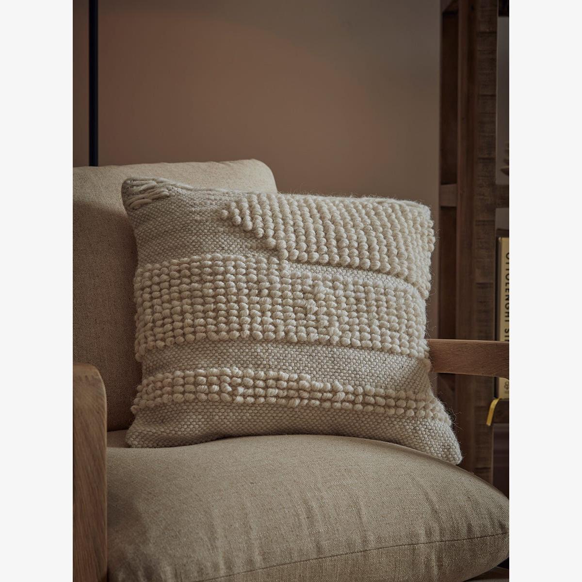 Delicately crafted woolen dots create a textural pattern that enhances our Nita cushion cover. Its neutral tones allow this cushion to blend wonderfully into a variety of interior schemes, creating a warming and comforting atmosphere in any home. Place on your bed for a cosy and relaxing space, or on your armchair for a snug reading nook. This cushion cover is suitable for a 45 x 45cm cushion pad which is available separately.