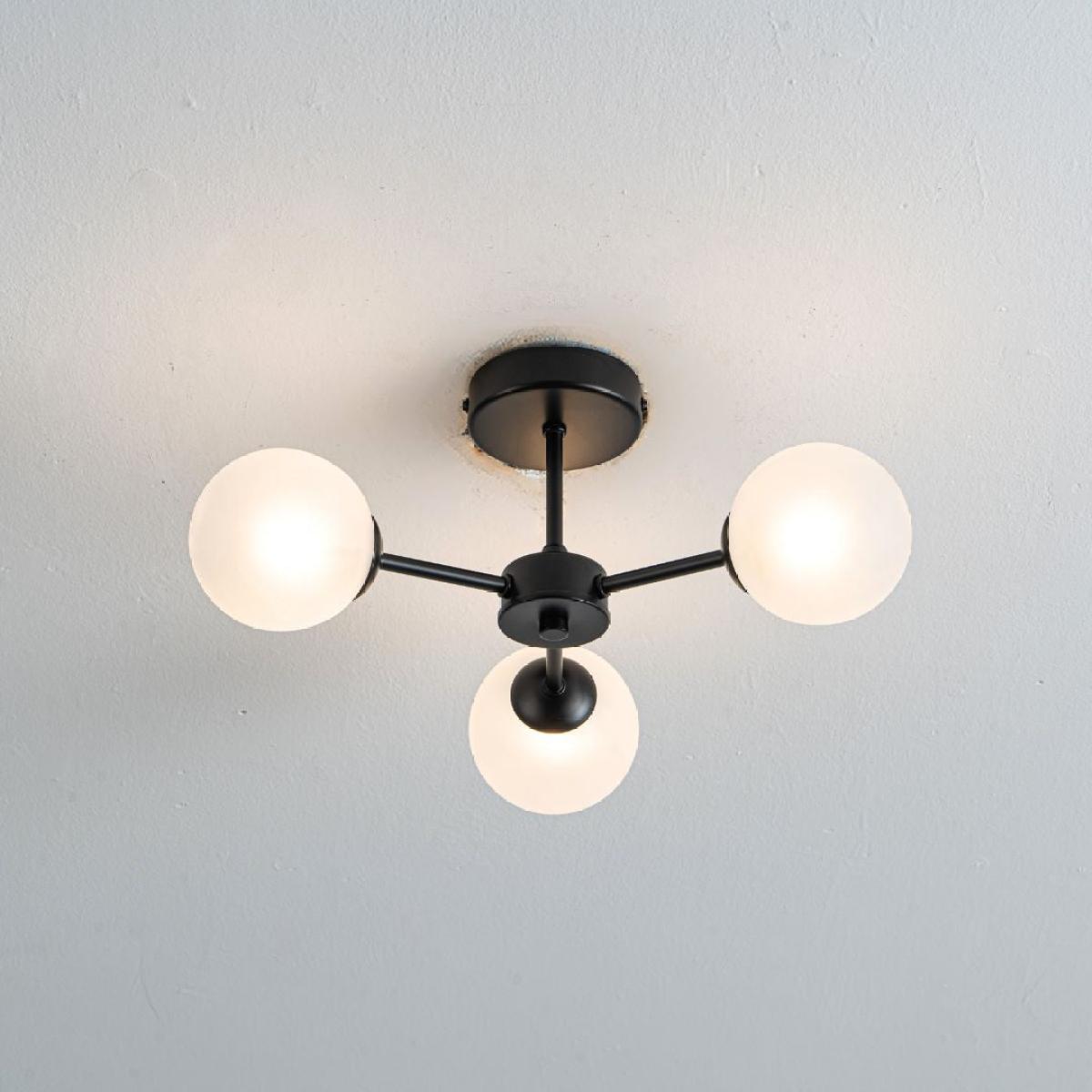 I love this semi-flush fitting for its sleek, modern look with a hint of understated elegance. The black finish and frosted glass globes add a contemporary edge while providing a soft, diffused light that works well in various settings. It’s particularly versatile and suits both minimalist and industrial interiors, making it ideal for living rooms, kitchens, or even hallways. For styling tips, consider pairing it with matte black fixtures or geometric furniture to create a cohesive look. When installing, keep it at an appropriate height to maximise light coverage without overwhelming the ceiling and to ensure it complements the proportions of your space.