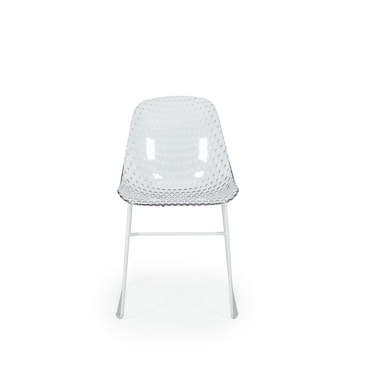 With it's stylish rounded plastic seat, the Niva Chair offers a comfortable and supportive sit, as well as a modern design that's sure to enhance any space. This multi-functional chair is easy to maintain thanks to the wipe clean seat and white powder coated metal legs, and boasts a clear finish with a stunning textured design.