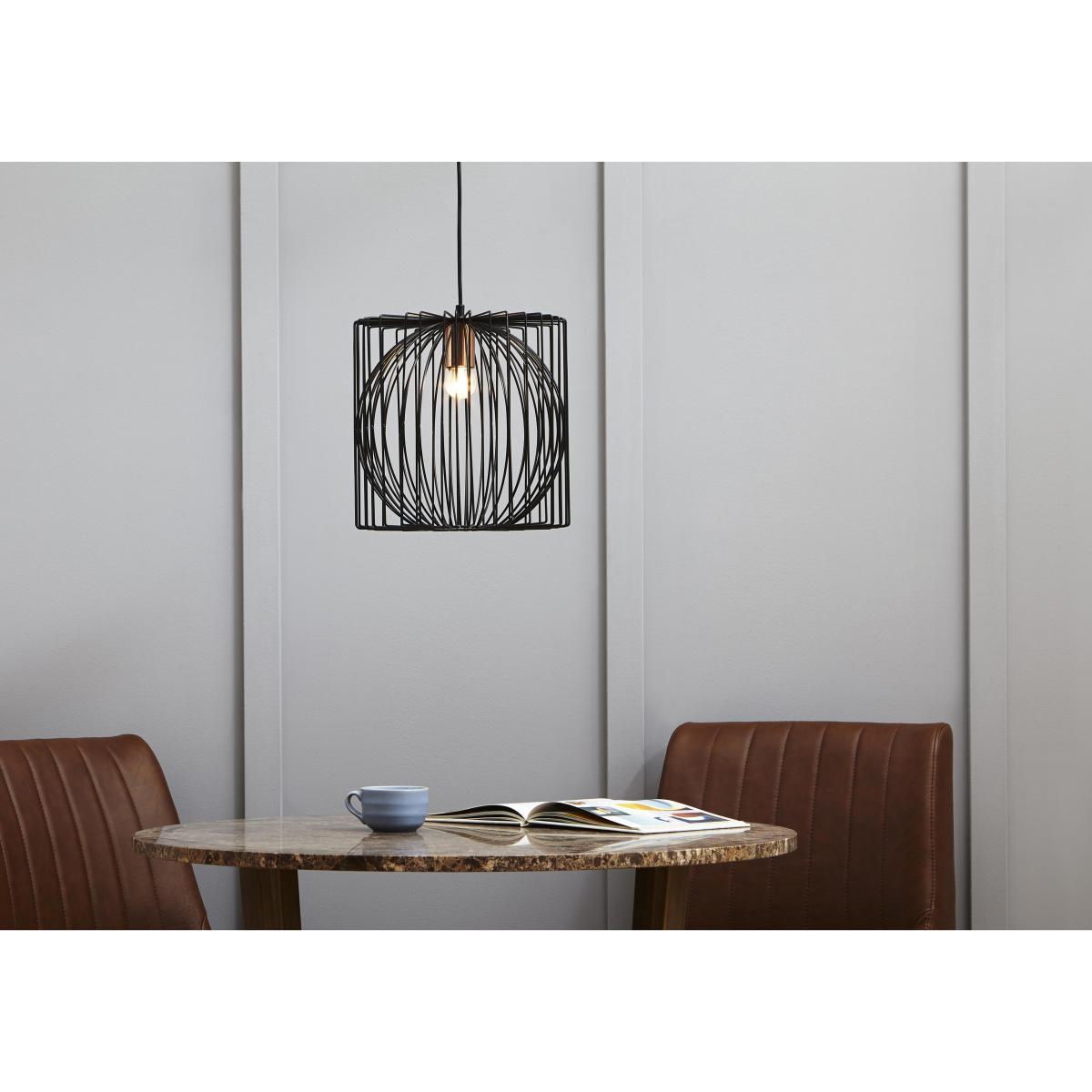The Nix 1 light pendant ceiling light is metal wire-work at its most beautiful and intricate, so it’s sure to make an impact wherever you display it. The matt black metal frame is cleverly shaped to create the illusion of an inner sphere. The lamp holder is polished copper, which contrasts well with the black wirework. This stunning ceiling light, with more than a touch of industrial style, is suspended with 1m of cable, adjustable on installation. The Nix 1 light pendant ceiling light fits a 60W (E27) bulb. Pictured with a LED globe bulb (sold separately). Dimensions. Width diameter: 32cm (13in). Height: 38-136cm (15in-54in).