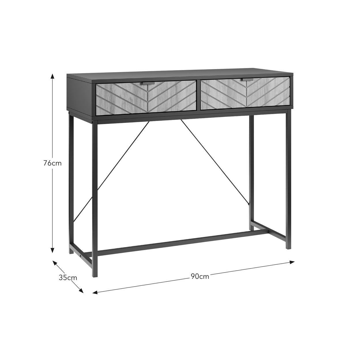 * Console table* 2 drawer storage space* Compact design* Nixon range* Groove detailing* Powder coating metal leg* Metal handles Bringing a sleek and compact design to your hallway or living room décor, the Nixon Console Table is the perfect piece of furniture to elevate a modern and minimalist style. Featuring two convenient drawers to store away any clutter or to keep your essentials nearby, the drawers are decorated with a simple but stunning groove detailing, adding a touch of depth to the overall design. The metal handles are sturdy and add a contemporary while the powder-coated metal leg not only provides stability but also adds a modern touch to the design. Combine with other pieces from the Nixon range for coordinated furniture across your living space.