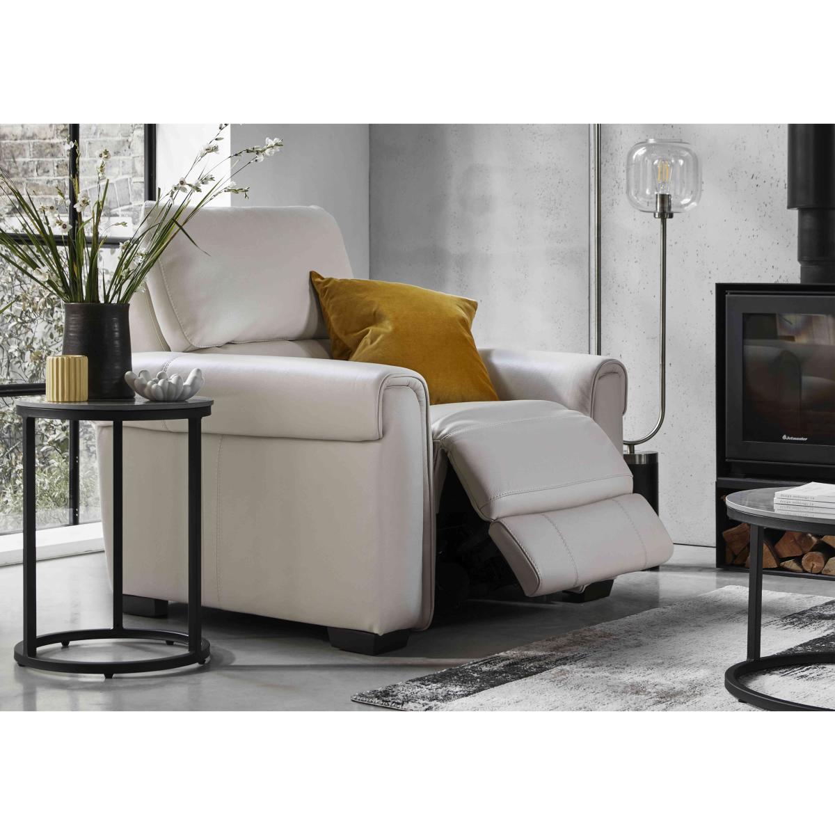 We asked our designers to create a range of sofas that offers style, comfort and value in one – and they certainly delivered. Our Nixon collection of power recliner sofas and chairs offers a more luxurious way to relax at a great price. And with sprung seats and superb cushioning, this range definitely provides the comfort and support you want. Looking for a different size or configuration? The Nixon range is fully modular and we’re here to help you create the sofa that perfectly fits your living room and your lifestyle. Handcrafted and available in both 100% leather and beautiful fabric upholstery, the Nixon range is a Furniture Village exclusive. Relax in style with this lovely leather armchair. And if you opt for the power recliner model, you can really dial up the comfort. In a huge choice of colours for the 100% leather upholstery. Handcrafted. Why you’ll love it It’s everything you want in a modern armchair – style, comfort and value. Plus it’s even available with a power recliner for personalised support. Fine-tune the way you relax with independent back and foot recline. The power recliner version also has USB charging and recliner safety locking. Sitting is believing. Clever design evenly distributes weight for optimal support. Gorgeous 100% leather upholstery in a very wide range of colours. Want something different? Handmade exclusively for Furniture Village. This leather armchair is part of our Nixon range. What you need to know Medium comfort level. Seat suspension: no-sag spring. Seat cushioning: foam and inner coil spring. Cushioning is fixed. Back suspension: rubber webbing. Back cushioning: fibre. Cushioning is fixed. Arm cushioning: foam and fibre. The non-recliner version of this armchair does not have USB charging. Please allow time for new recliners to ease. Minor gaps are necessary to ensure ease of recliner motion and may be exaggerated depending on floor type. Leather has unique marks and characteristics with variation in colour and texture. Leather softens with use. Smoothing the tops of leather cushions prevents signs of visual comfort. Please read our upholstery care guide for more advice.