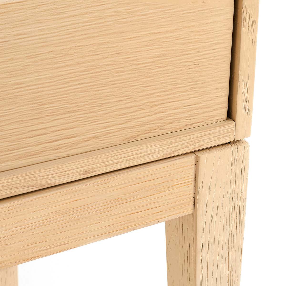 I love this chest of drawers because of its sleek, minimalist design that works beautifully in both modern and Scandinavian-inspired interiors. Its clean lines and light wood finish make it versatile, complementing a range of colour schemes and styles. The Nizou works particularly well as a bedroom storage solution or in a living space that values simple organisation. For styling tips, try pairing it with understated decorative objects on top, like a small vase or a stack of books, to keep the look fresh and uncluttered. It's also a practical choice because its compact size can fit into smaller spaces while still providing ample storage; just be mindful of arranging taller items nearby to avoid overloading the visual simplicity.