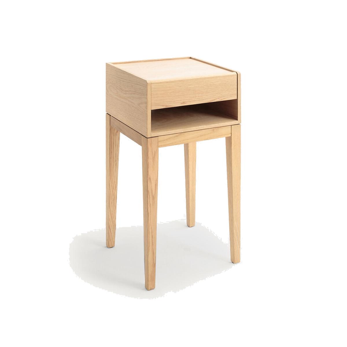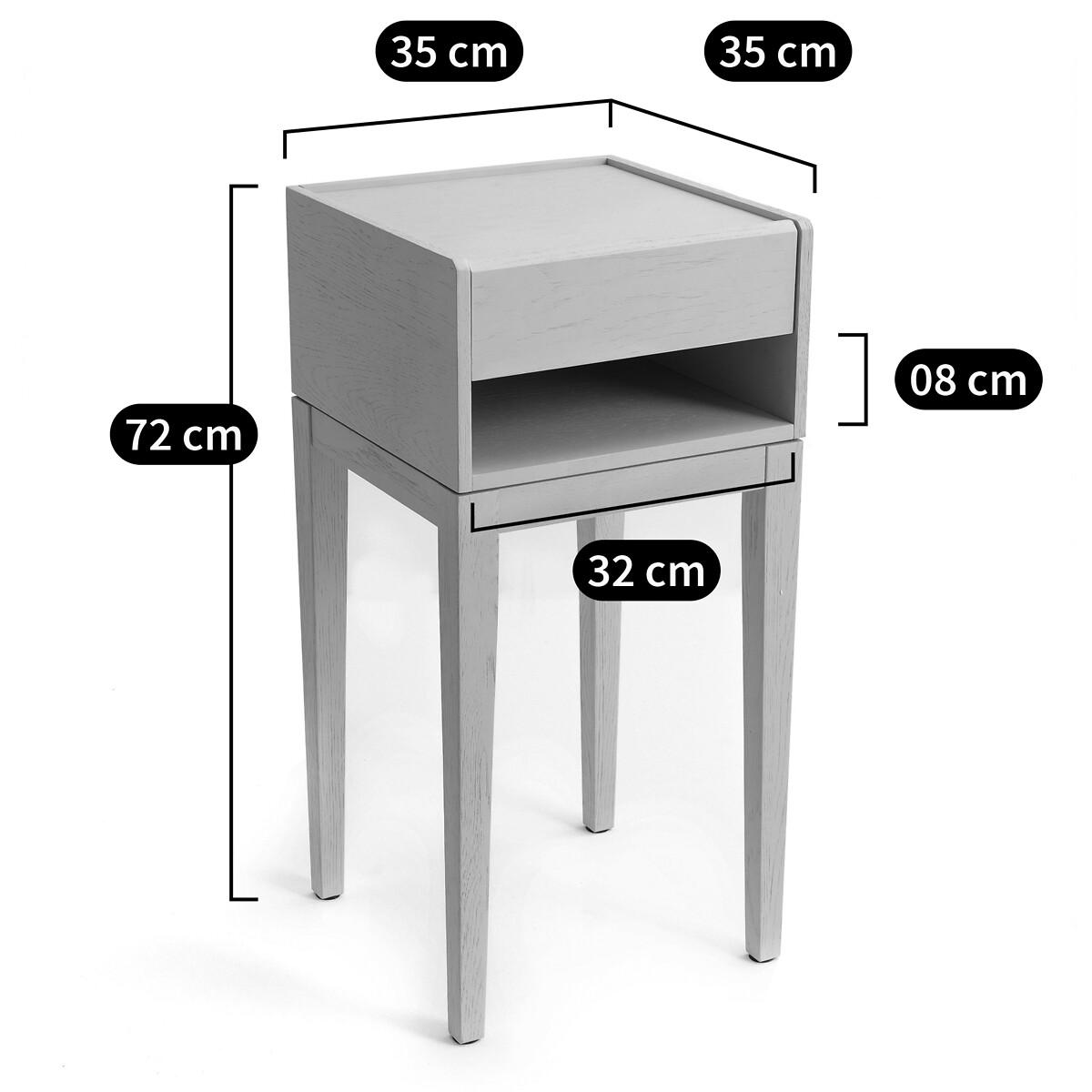 The Nizou bedside cabinet is an exclusive AMPM design by Emmanuel Gallina.. A striking modern bedside or end table. Single material, simplicity and finesse are the main characteristics of this piece. The high and delicate base, in reference to the 'jumping' style chests of drawers, creates a slender collection which fits clearly into our interiors. Emmanuel Gallina is a designer. For him, it's all about elegance, prominence and simplicity, with clear attention to detail when it comes to design, shape and practicality. Product Details • In FSC® Mixed certified oak veneer with polyurethane finish • 1 drawer • 1 niche with cable hole • Solid oak legs with polyurethane finishDimensions. Overall • L35 x H72 x D35cm Usable space • Inner drawer :L27.5 x H5.5 x D28.5cm • Interior compartment: L32 x H8 x D33.5cm • WOOD FROM MORE SUSTAINABLY MANAGED FORESTS AND CONTROLLED SOURCES. FSC® Mix wood contains at least 70% FSC® certified and/or recycled wood, the remainder being FSC® controlled wood. Parcel dimensions and weight • L63.5 x H30.5 x D52cm • 12kg