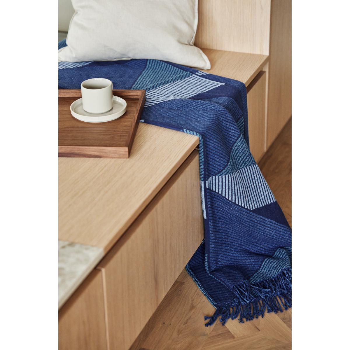 I really like how the blue of this blanket adds a calm, versatile touch to various interiors. Its geometric pattern gives it a contemporary edge, making it perfect for modern or minimalist schemes, but it also blends well with coastal or Scandinavian styles due to its cool colour palette. Practical styling tips include draping it over a sofa for an inviting look, or folding it neatly at the end of a bed to add a pop of colour with minimal effort. Its size makes it suitable for both lounging and layering, and the pattern can help to break up plain textiles or complement patterned furnishings. Overall, this throw offers both style and comfort, making it a smart, understated addition to any versatile living space.