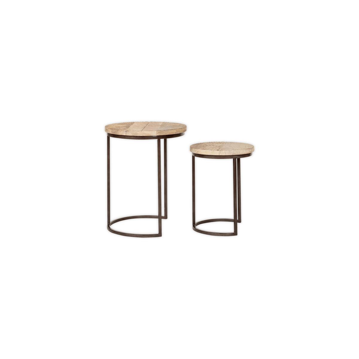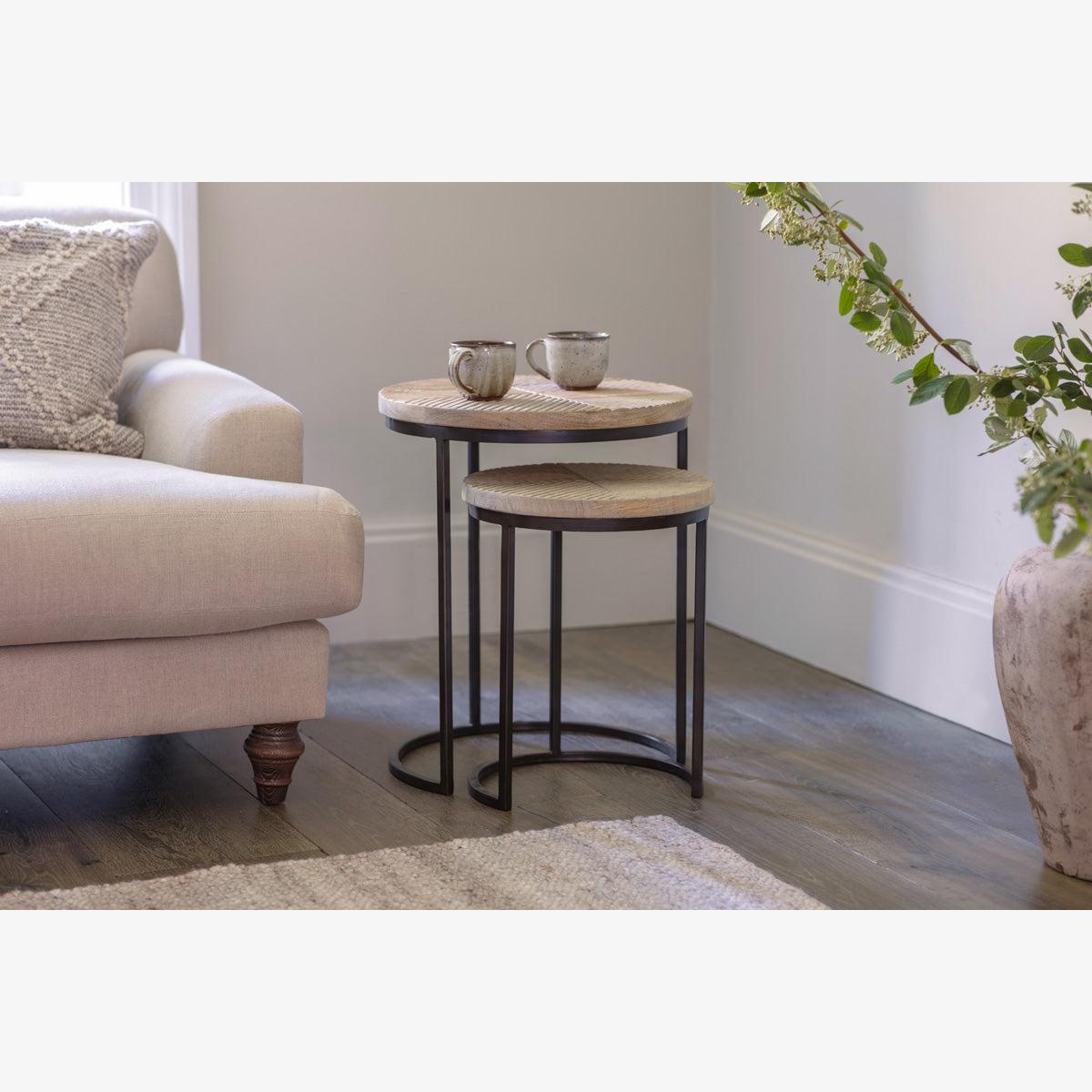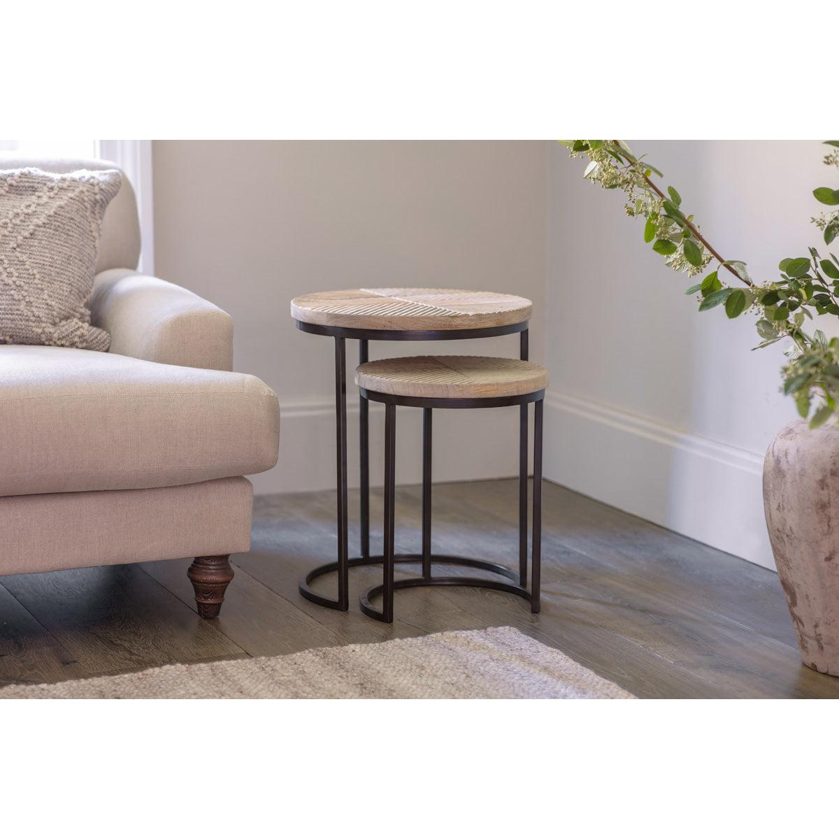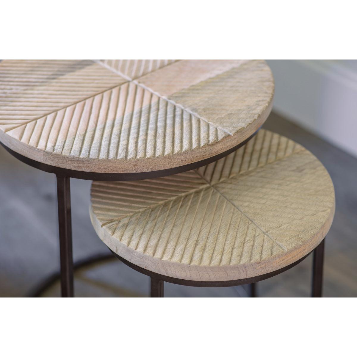 nkuku Aasha Carved Mango Wood & Iron Nesting Side Tables Set Of 2 | Tables | Natural | ()