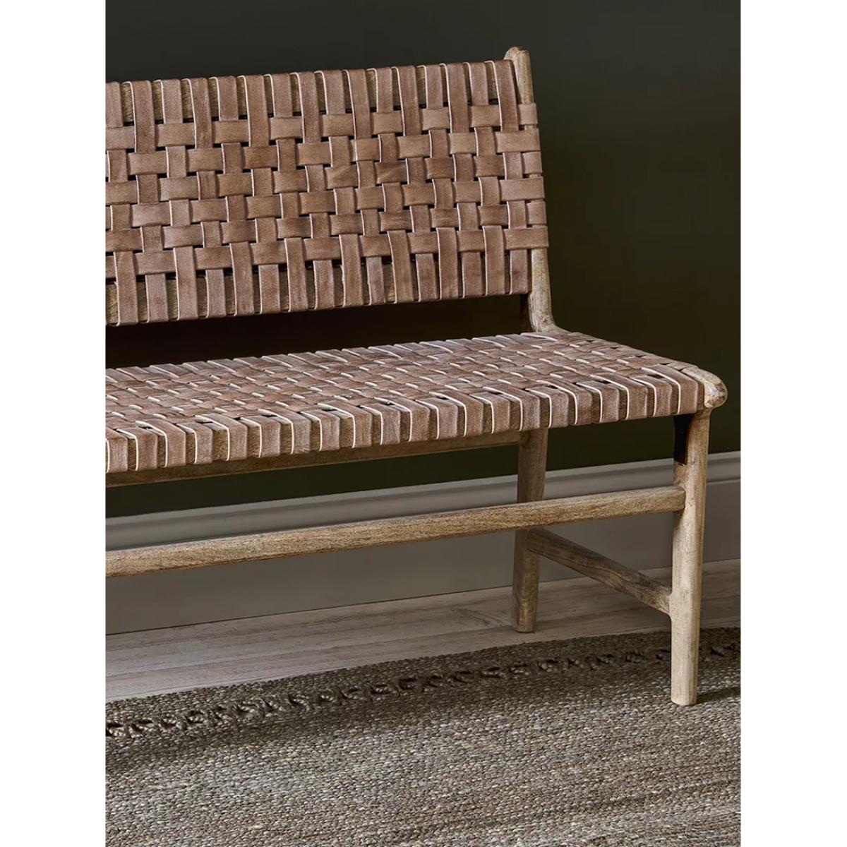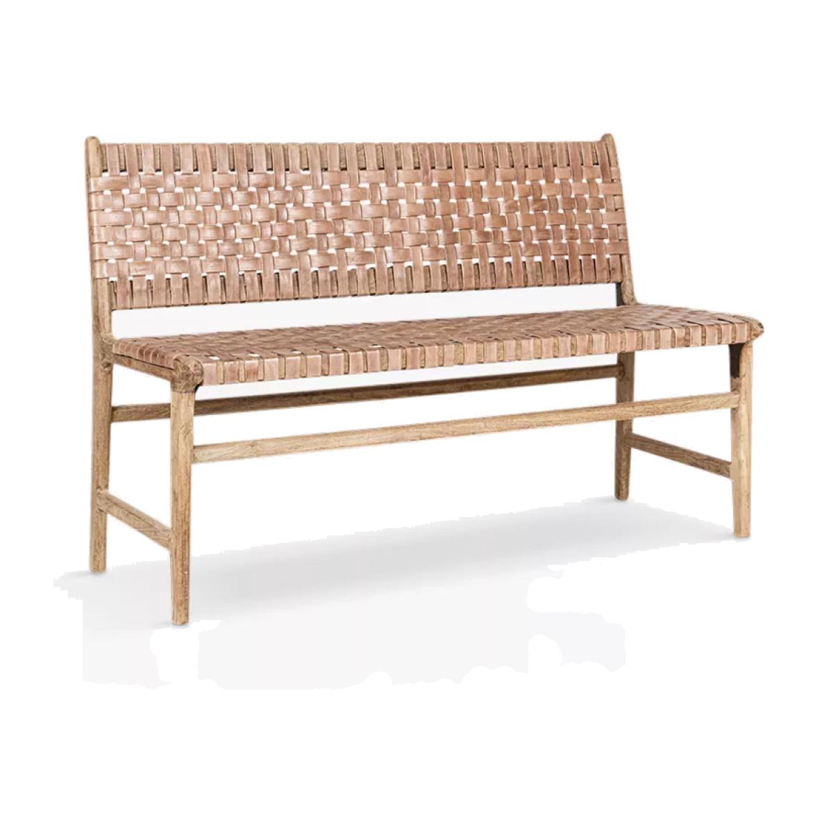 I love this piece because of its natural aesthetic and versatile appeal. The woven leather seat adds texture and visual interest, making it suitable for both contemporary and rustic interiors. It works particularly well in neutral or earthy colour schemes, where it can complement wooden dining tables or contrast against sleek, modern finishes. Practical styling tips include pairing it with soft linen cushions for added comfort or placing a simple runner on the top to enhance its crafted feel. This bench is ideal for casual dining spaces or as an extra seating option in open-plan living areas, bringing warmth and a touch of craftsmanship to any setting.
