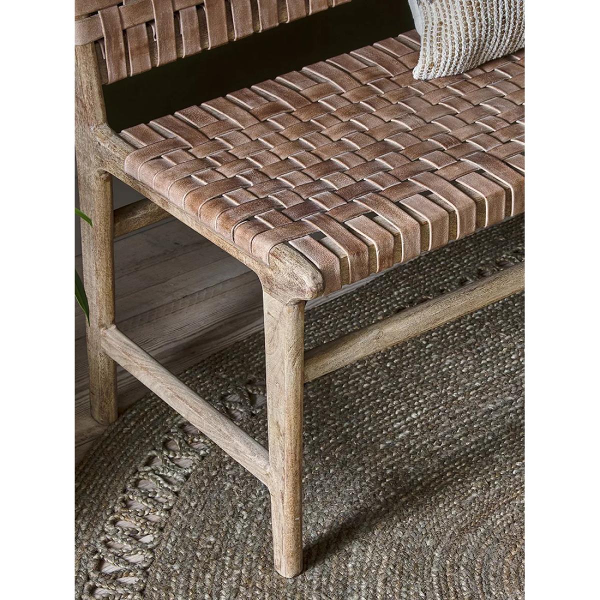 This woven leather bench is the latest addition in the much-loved Adembi range. The goat leather has been buffed and finished with a natural wax for the tan tones to come through and has been hand-woven to create a beautifully simple seat, perfectly complementing the soft, natural tones of the Acacia wood, which has been sandblasted for a rustic, textured finish.