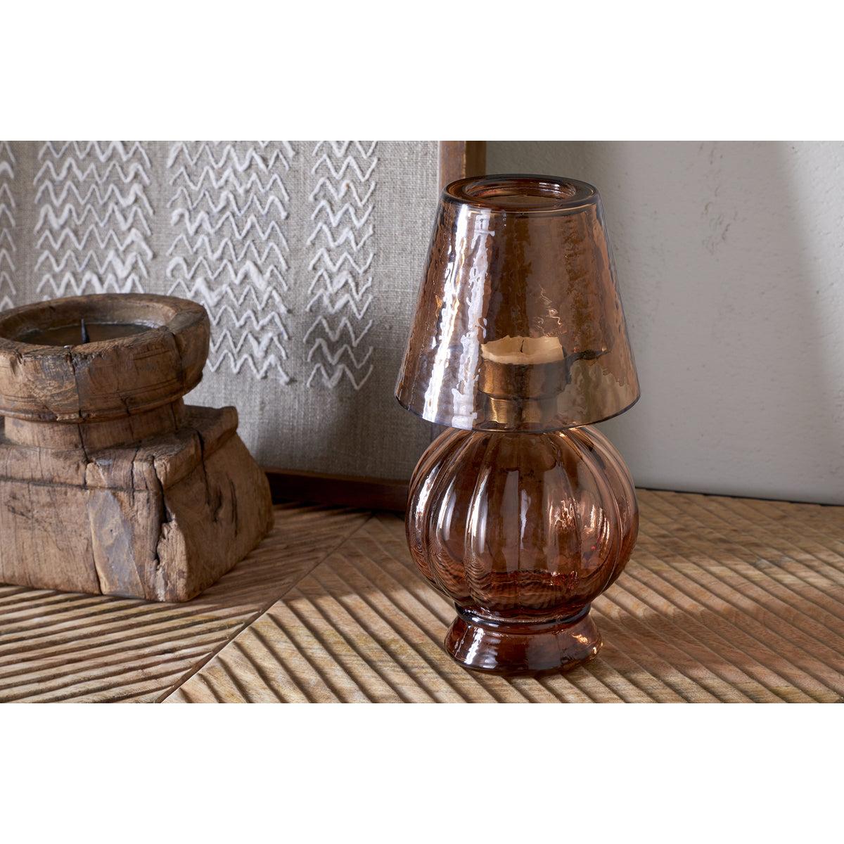 nkuku Adesola Glass Tealight Holder Lamp | Candles Holders & Lanterns | Amber