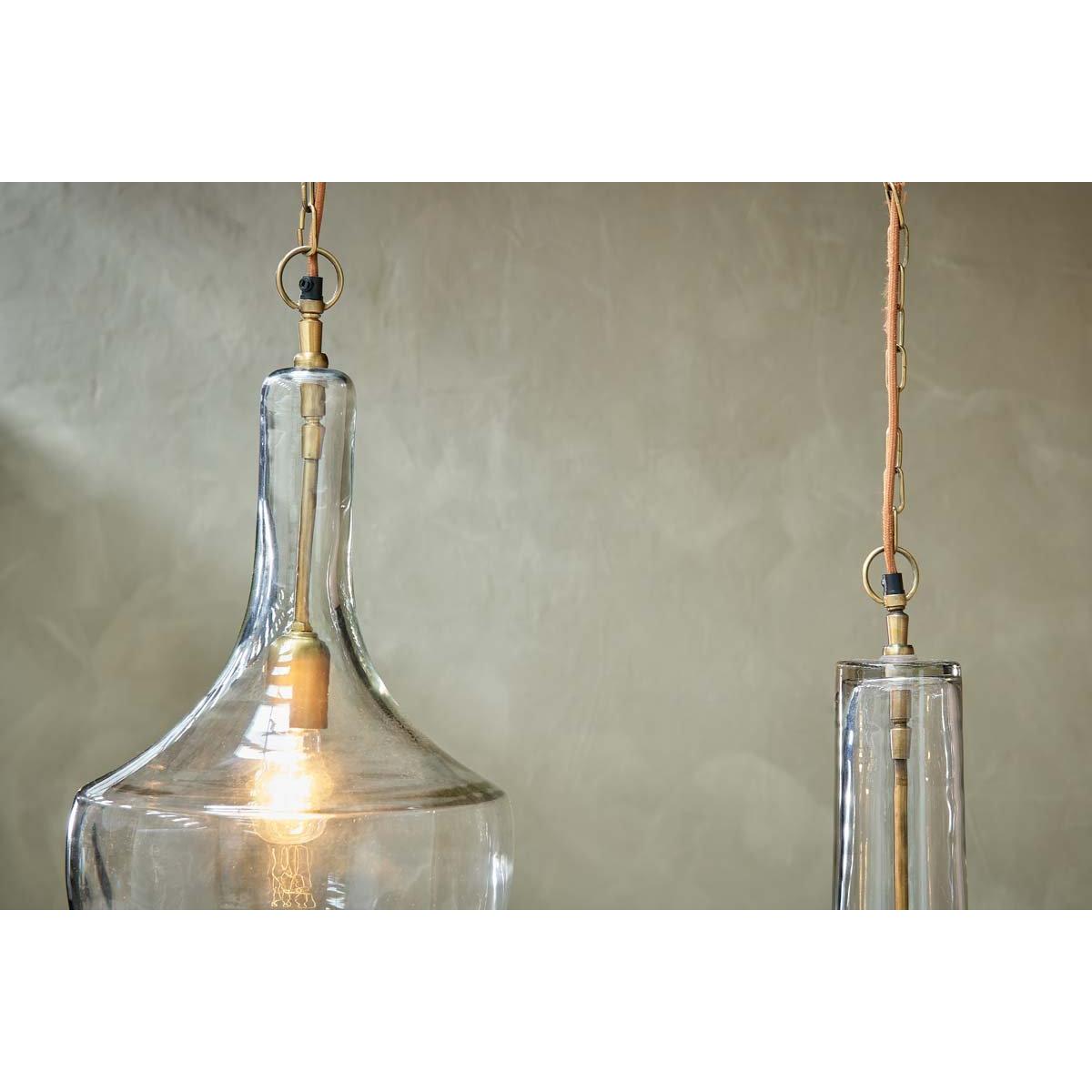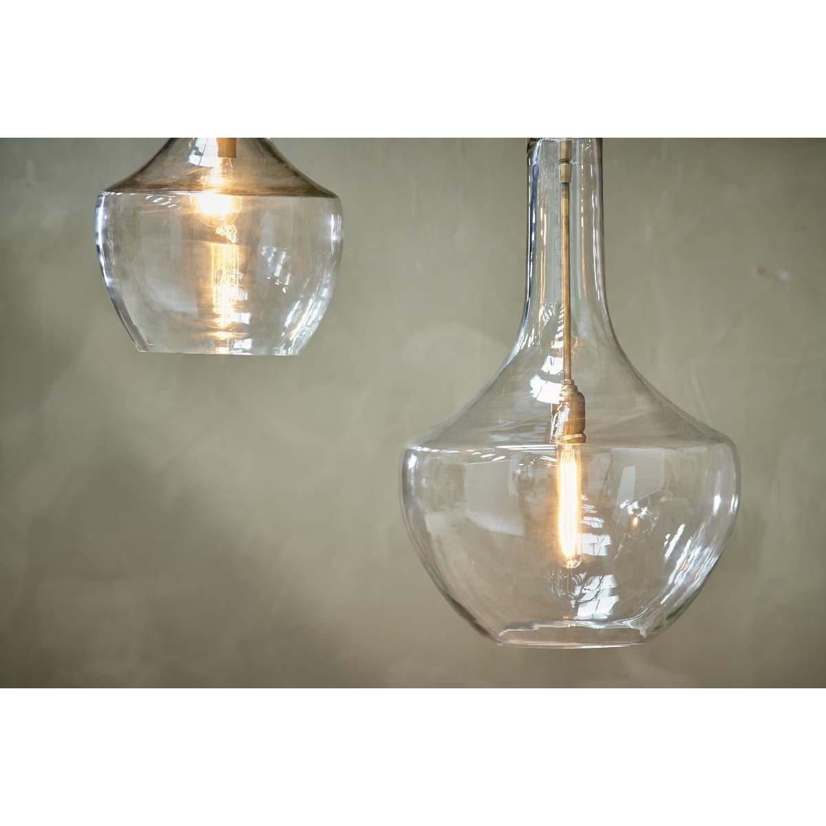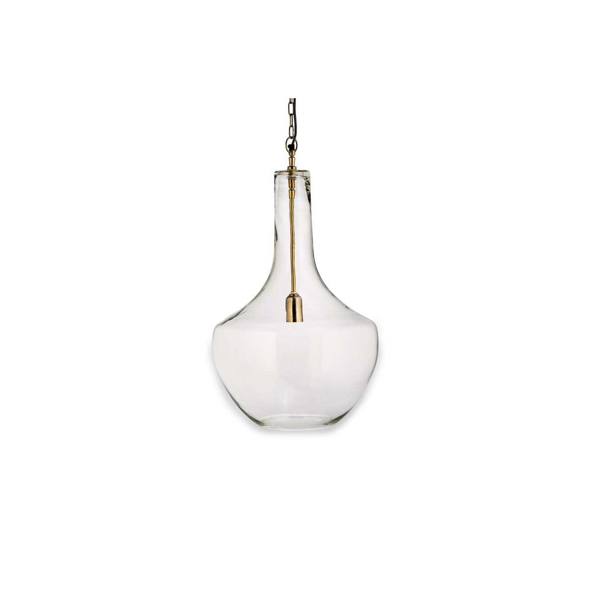 The Agatarla glass pendant is a truly stunning light. The elegant glass contours and simple brass fittings combine to create a timeless and appealing pendant that is a versatile as it is striking. | nkuku Agatarla Recycled Glass Pendant | Lights | Clear | Small