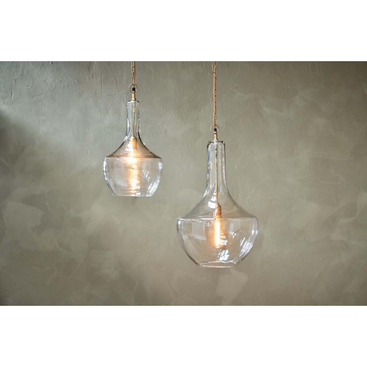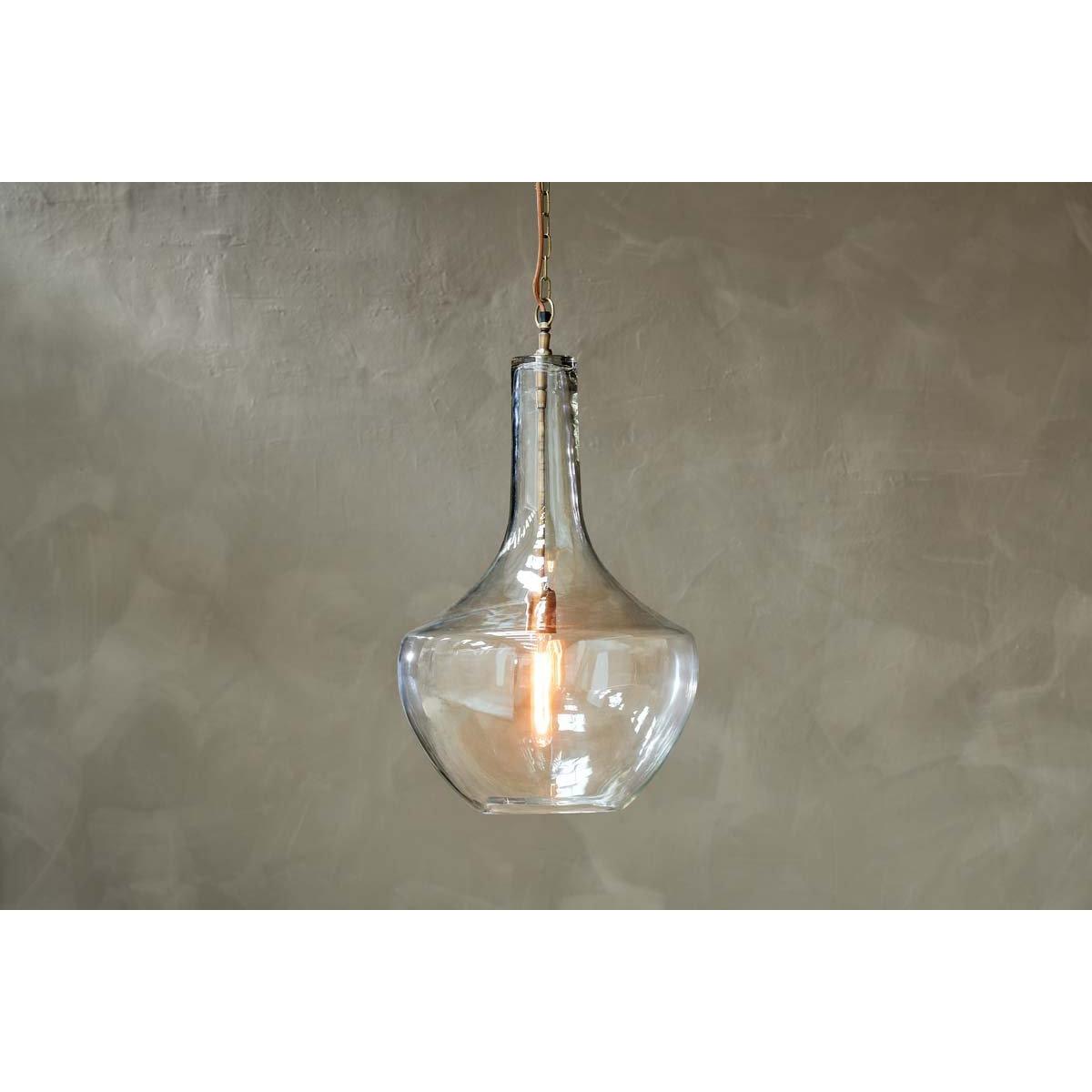 This elegant glass Agatarla pendant light is utterly sublime. Generously proportioned, the elegant contours are timeless and the size of this striking light makes it the perfect feature pendant light in an hallway, elevated porch or airy living space. This large statement light is also the perfect addition to a stairwell, making full use of a lofty space. | Nkuku Agatarla Recycled Glass Pendant | Lights | Clear