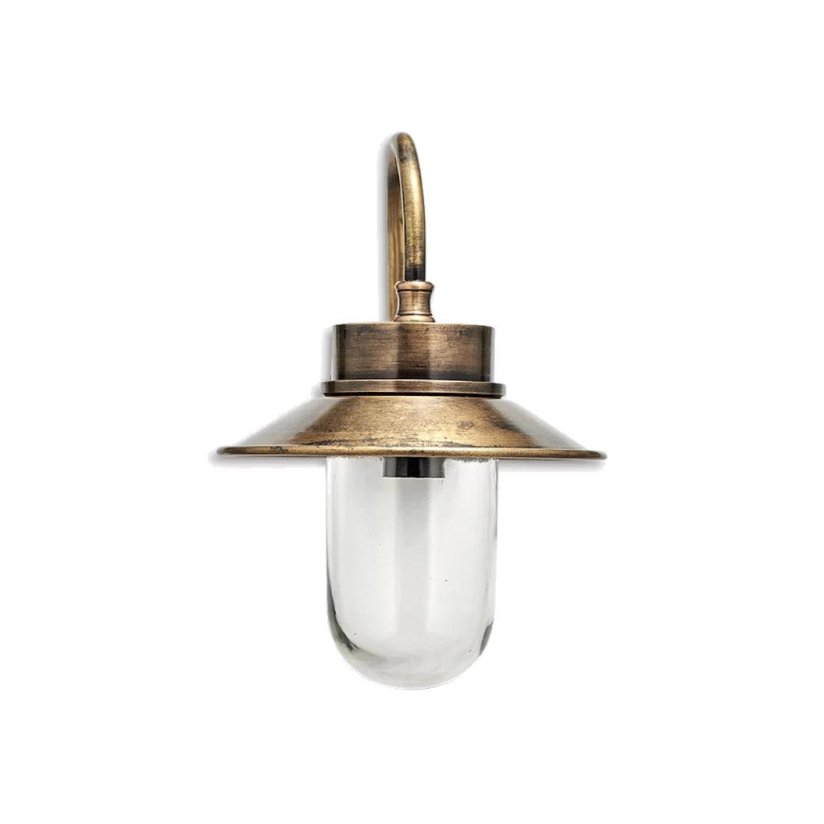 I love how this outdoor wall light has a vintage, industrial feel thanks to its brass finish, which adds warmth and character to any exterior scheme. It works particularly well in rustic, coastal, or contemporary gardens where a touch of antique charm is desired. Practical styling tips include pairing it with other brass or copper accents to create a cohesive look, or using it to highlight architectural features such as doorways or garden paths. Since the design is quite versatile, it can seamlessly blend with both modern outdoor furniture and traditional brick or stone exteriors, providing both functional illumination and visual interest.