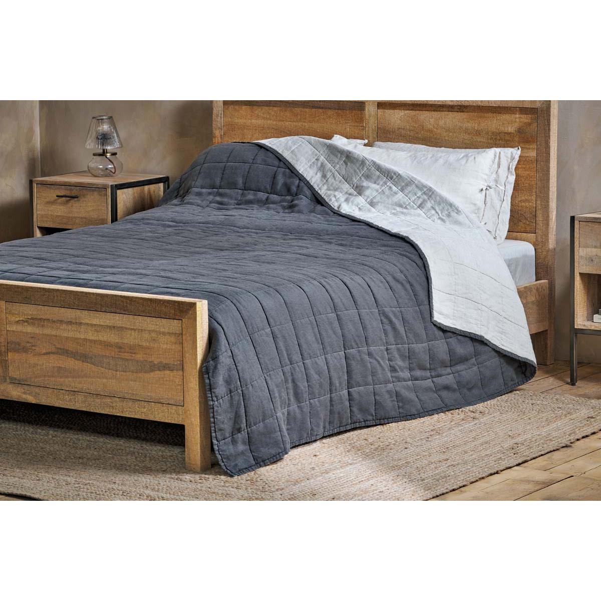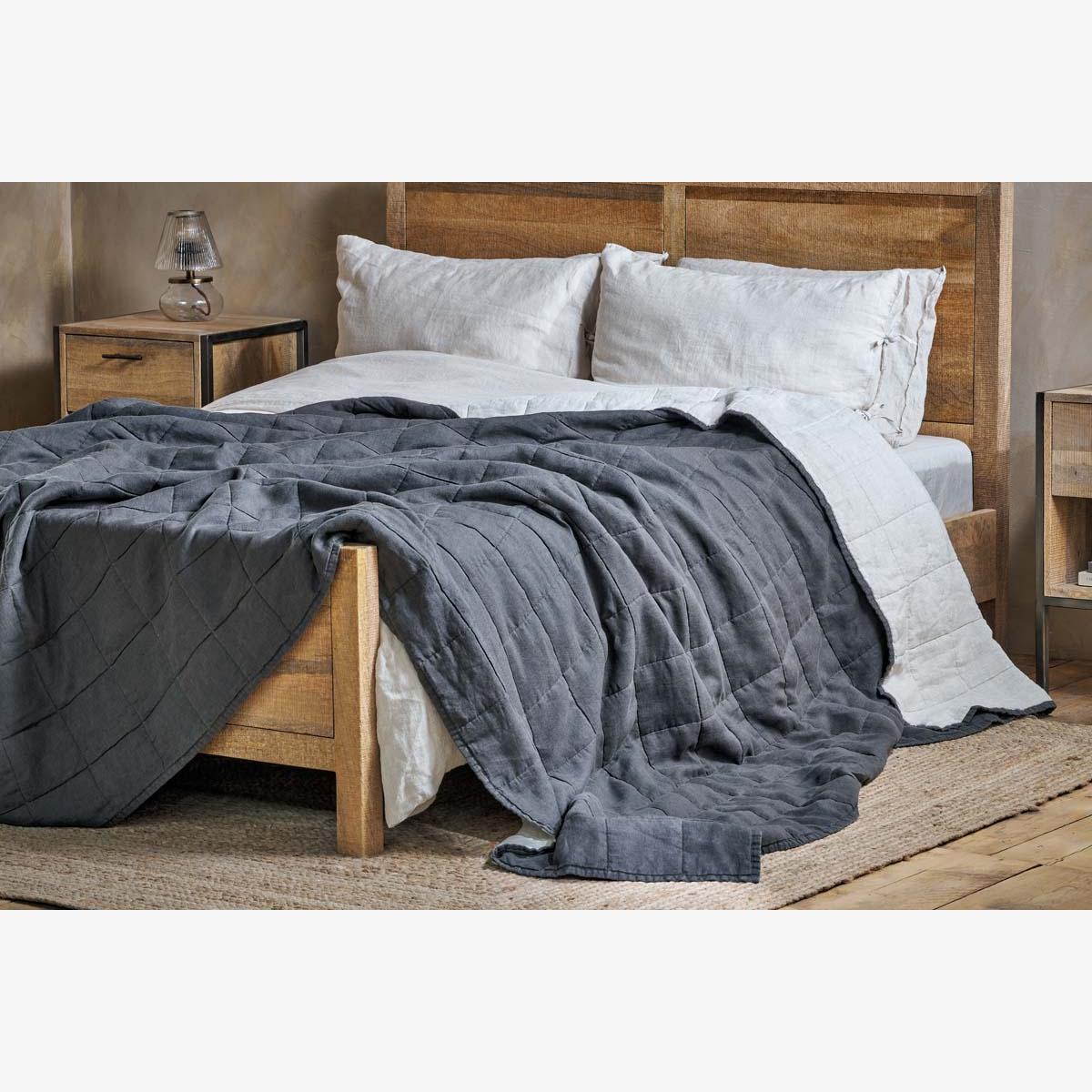 Nkuku Amar Linen Bed Quilt | Textiles | Charcoal