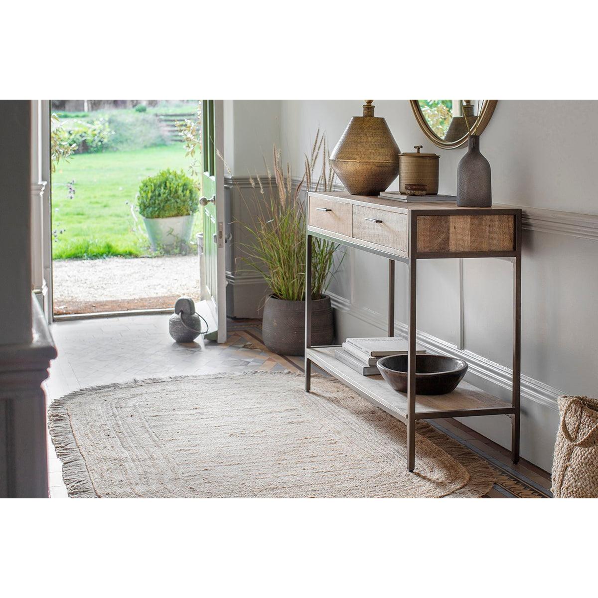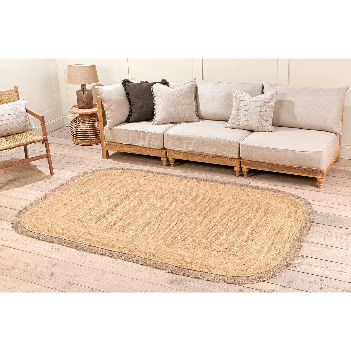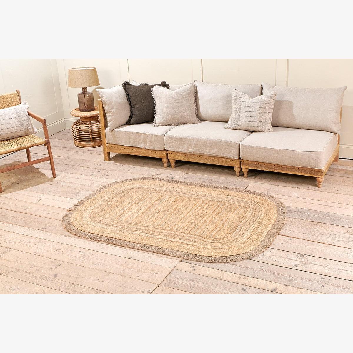 The Attinsi hemp and cotton rug makes an attractive centre piece. The frayed edge fringe feels tangible and fun whilst the traditionally braided hemp feels timeless and enduring. The Attinsi is the perfect blend of subtlety and texture, the neutral tones make it easy to place in a home.