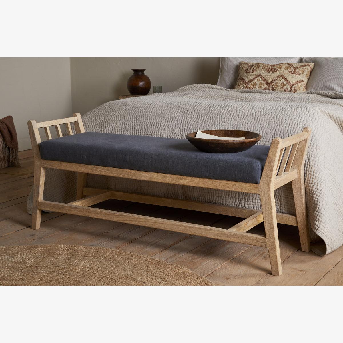 I really like this bench because of its versatile yet stylish design. The upholstered seat adds comfort, making it ideal for use at the foot of a bed or as extra seating in a living or hallway setting. The sleigh shape brings a classic feel that can soften more contemporary interiors or complement traditional schemes. It works particularly well in cosy, neutral spaces where its charcoal colour can add depth, or in more pared-back interiors where you want a piece that offers both function and a subtle design detail. Practical styling tips include pairing it with throw cushions for extra comfort or layering with natural fibres and textiles to create a inviting, lived-in look. It’s a flexible piece that combines function with understated style.